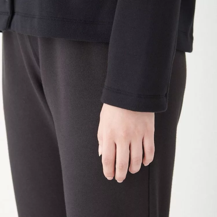 [MUJI無印良品]女聚酯纖維混內裏刷毛開襟衫S黑色
