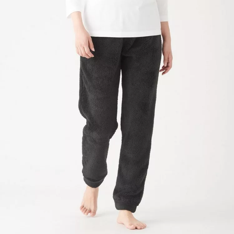 [MUJI無印良品]女聚酯纖維絨毛刷毛長褲S深灰