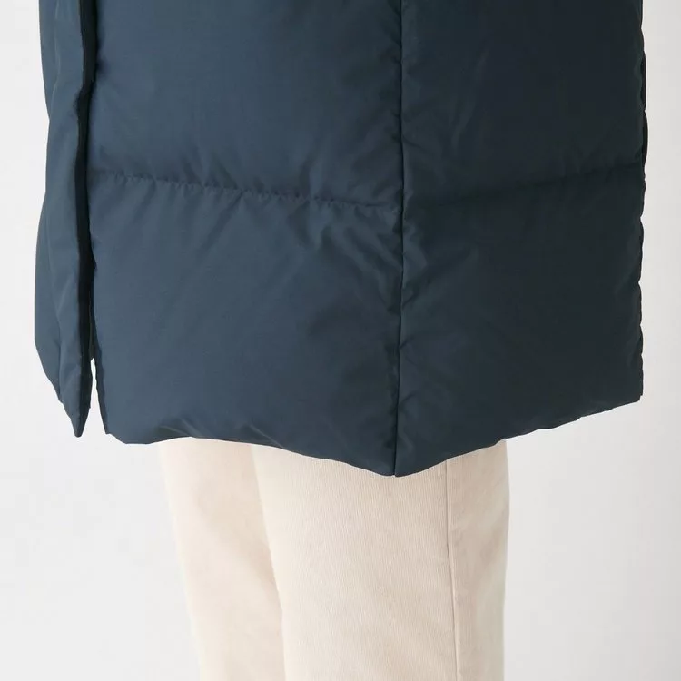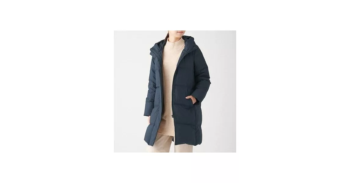 商品描述: [MUJI無印良品]女澳洲羽絨防潑水連帽大衣S暗藍