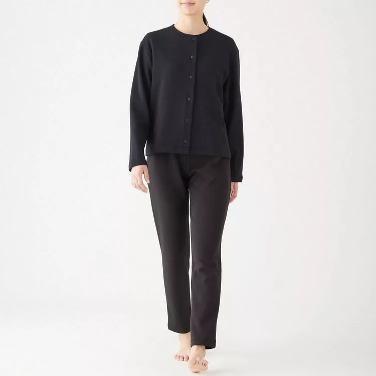 [MUJI無印良品]女聚酯纖維混內裏刷毛開襟衫S黑色