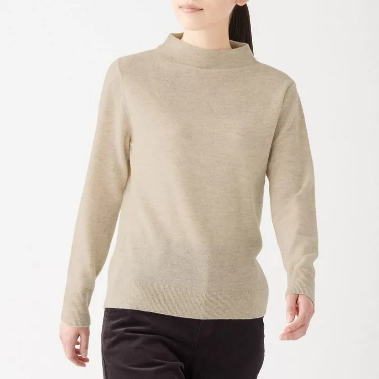 [MUJI無印良品]女氂牛毛混羊毛短領針織衫S淺藍