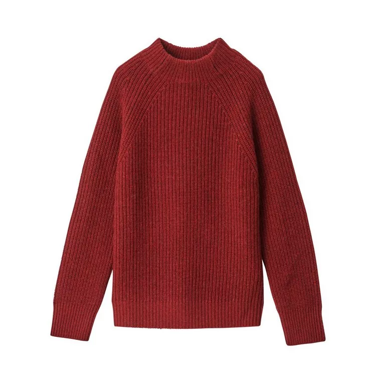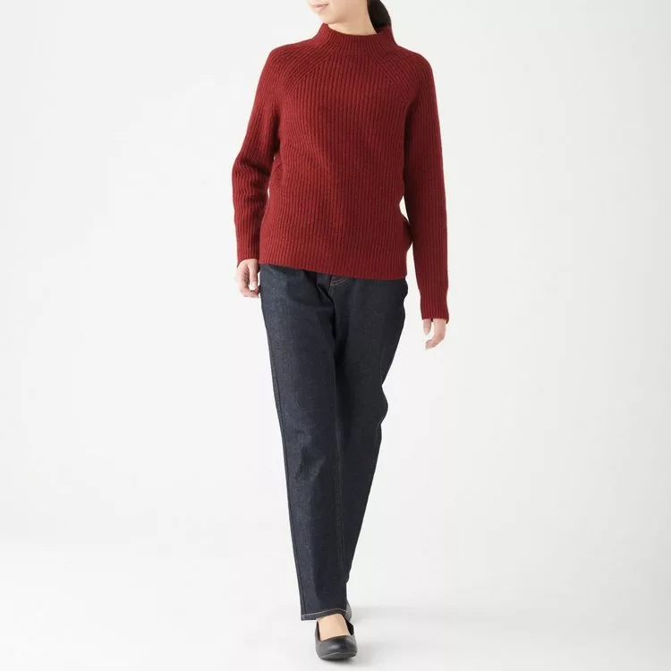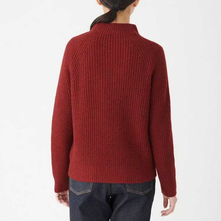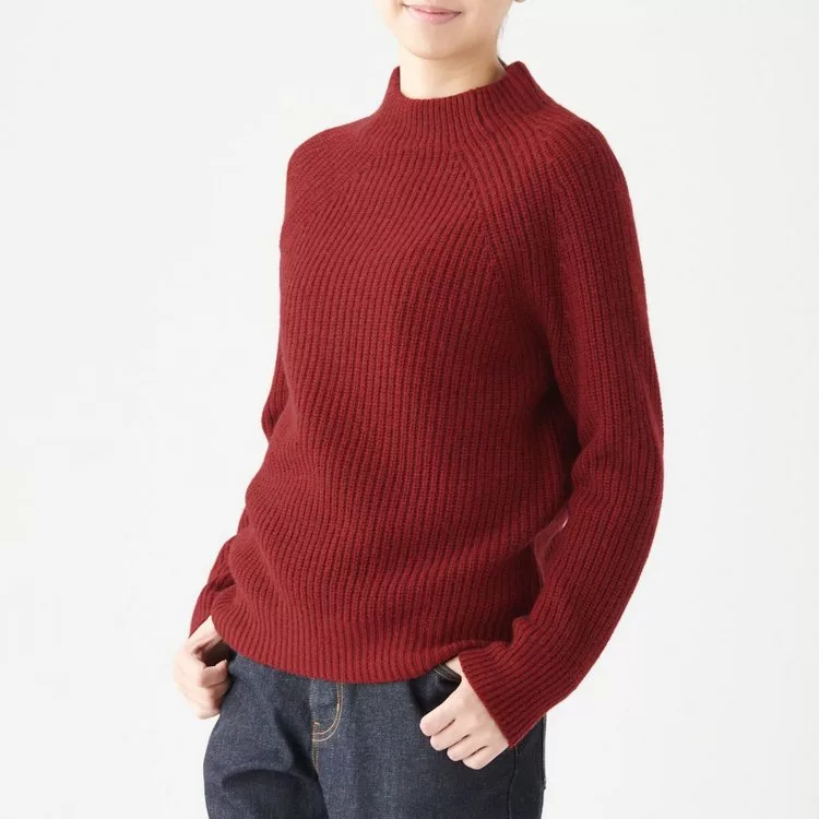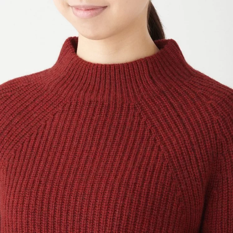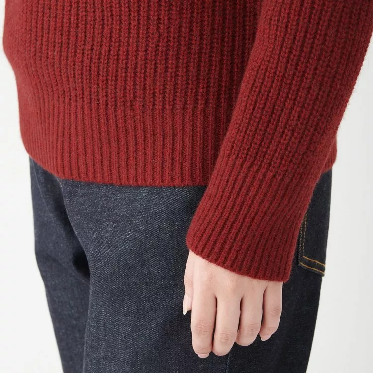 商品描述: [MUJI無印良品]女氂牛毛混羊毛螺紋短領針織衫S紅色