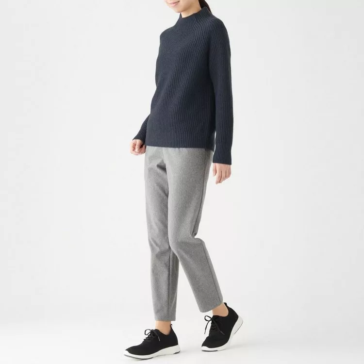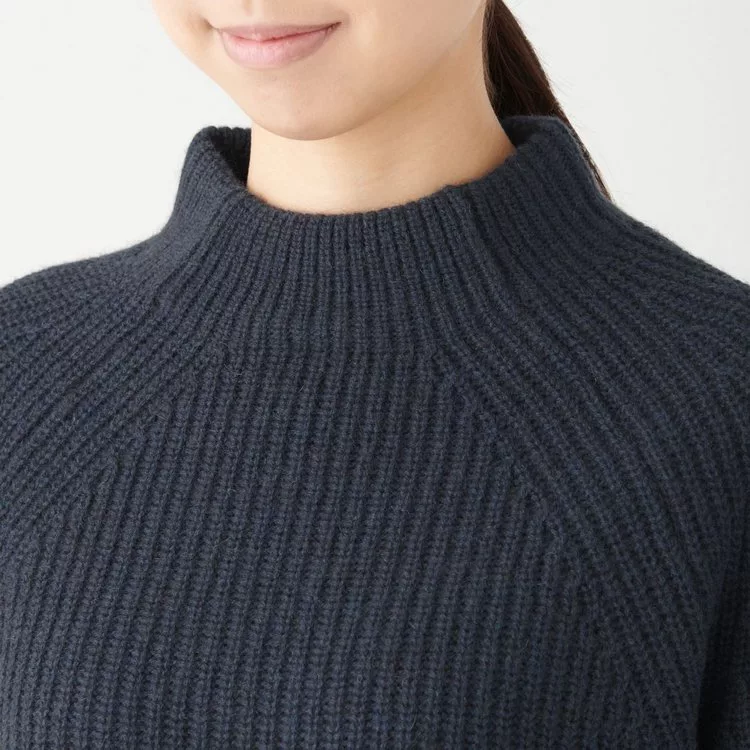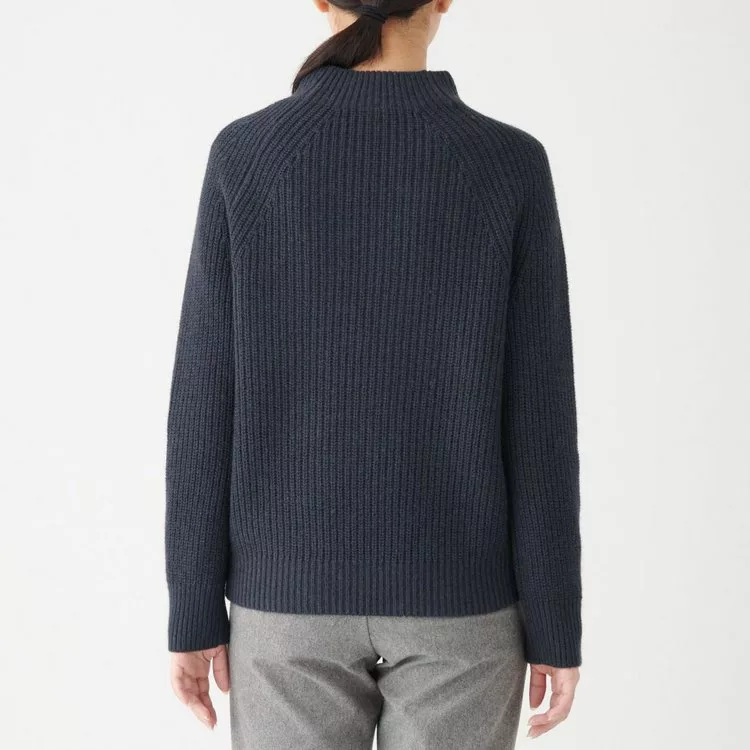 商品說明: [MUJI無印良品]女氂牛毛混羊毛螺紋短領針織衫S深藍