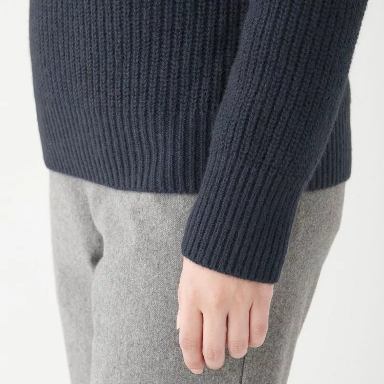 商品描述: [MUJI無印良品]女氂牛毛混羊毛螺紋短領針織衫S深藍