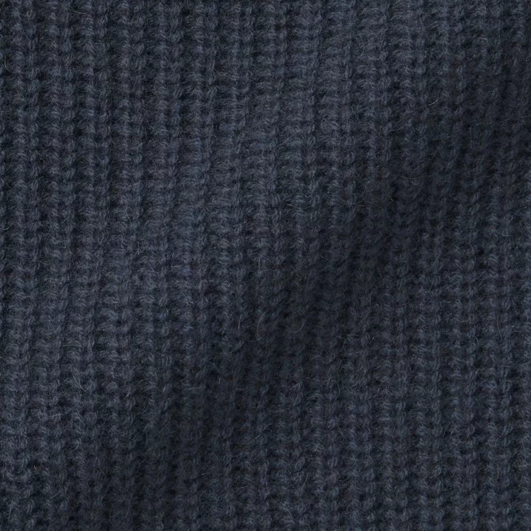 品名:女氂牛毛混羊毛螺紋短領針織衫深藍S