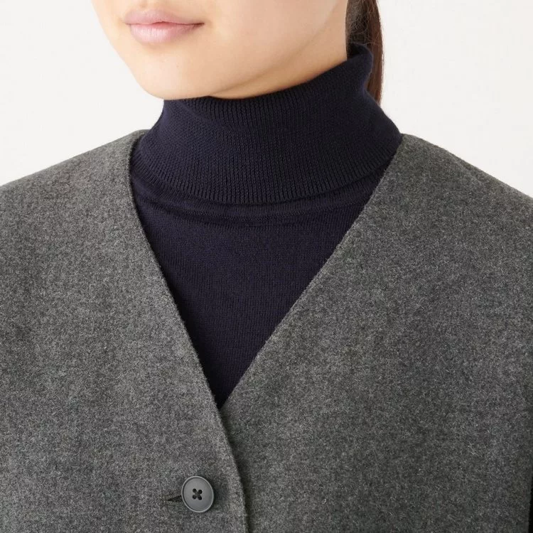 商品說明: [MUJI無印良品]女法國羊毛混雙面大衣S深灰