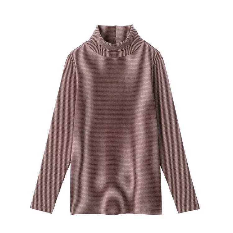 品名:女有機棉混彈性針織橫紋高領T恤暗紅橫紋S