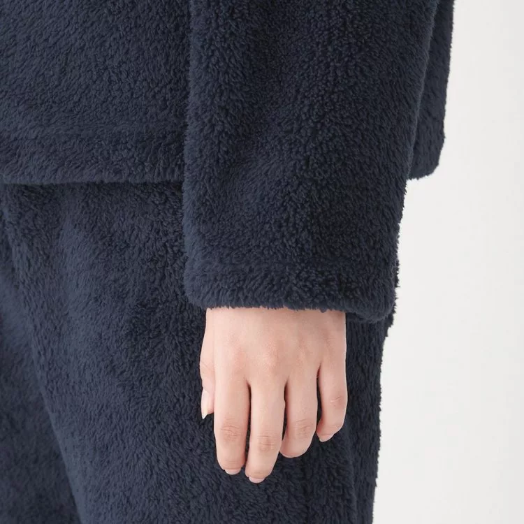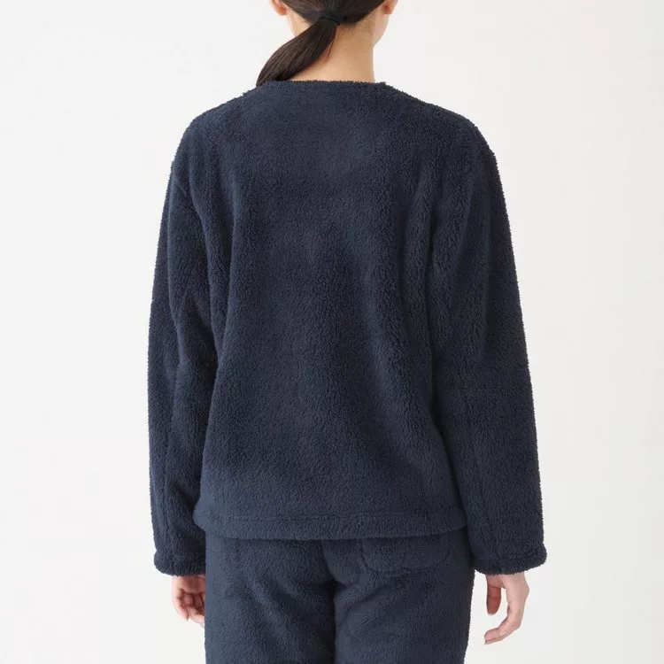 商品說明: [MUJI無印良品]女聚酯纖維絨毛刷毛開襟衫S暗藍