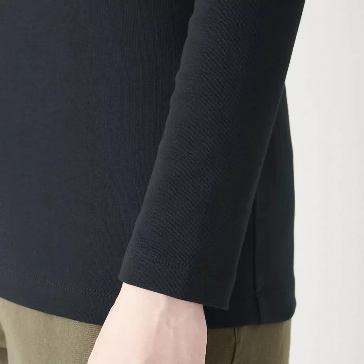 2019無印良品商品推薦-[MUJI無印良品]女有機棉混彈性針織高領T恤S暗藍暢銷購買推薦