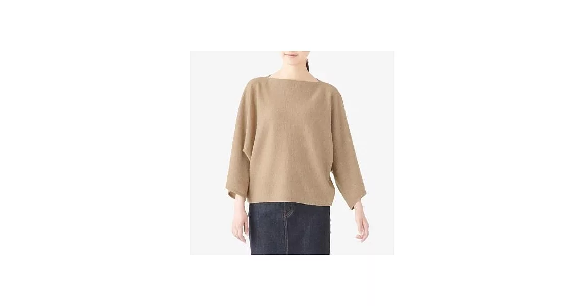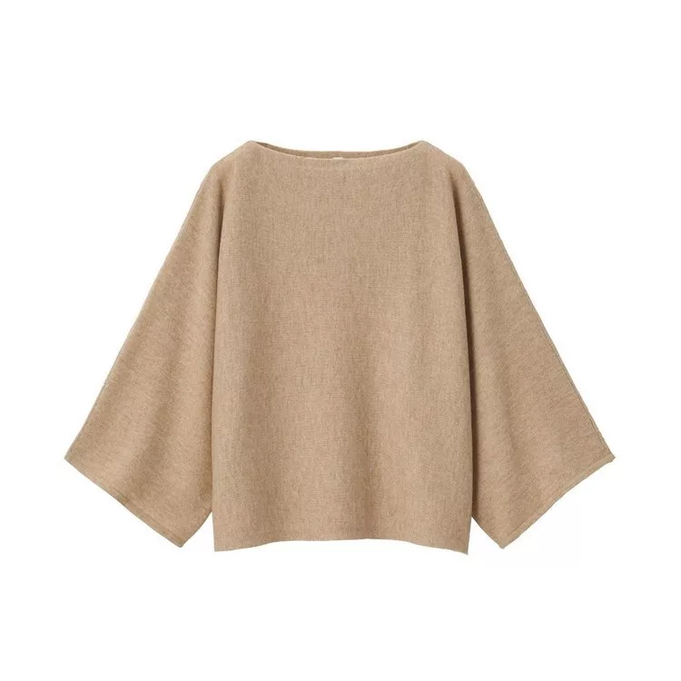 商品描述: [MUJI無印良品]女駱駝毛混羊毛蝴蝶袖套衫