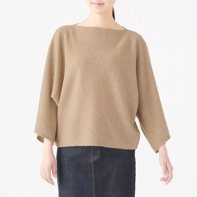 商品說明: [MUJI無印良品]女駱駝毛混羊毛蝴蝶袖套衫