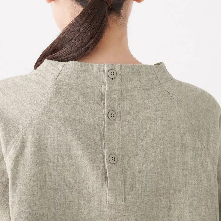 [MUJI無印良品]女棉混二重織無領大衣M~L淺灰