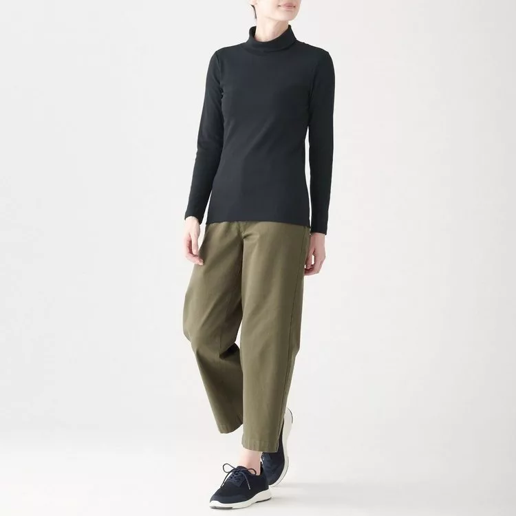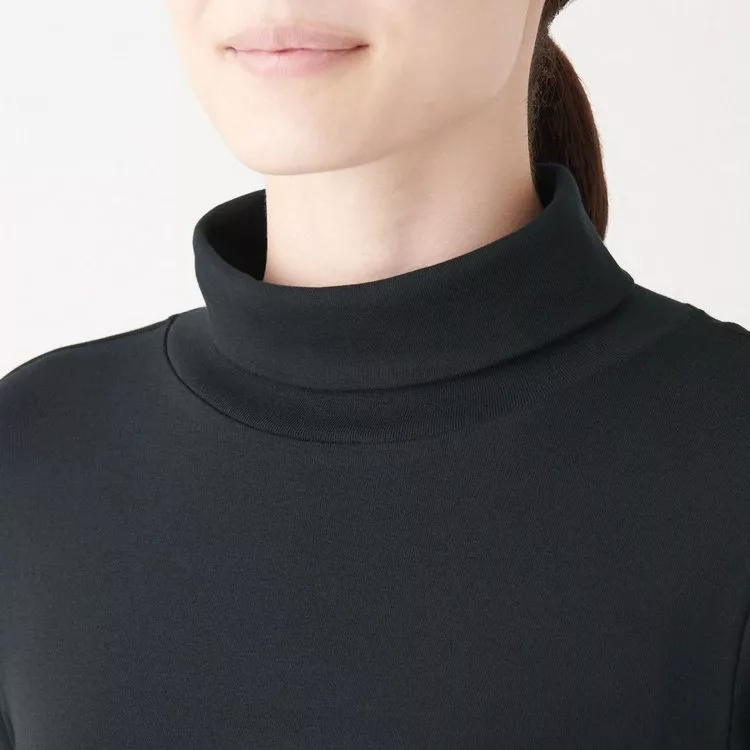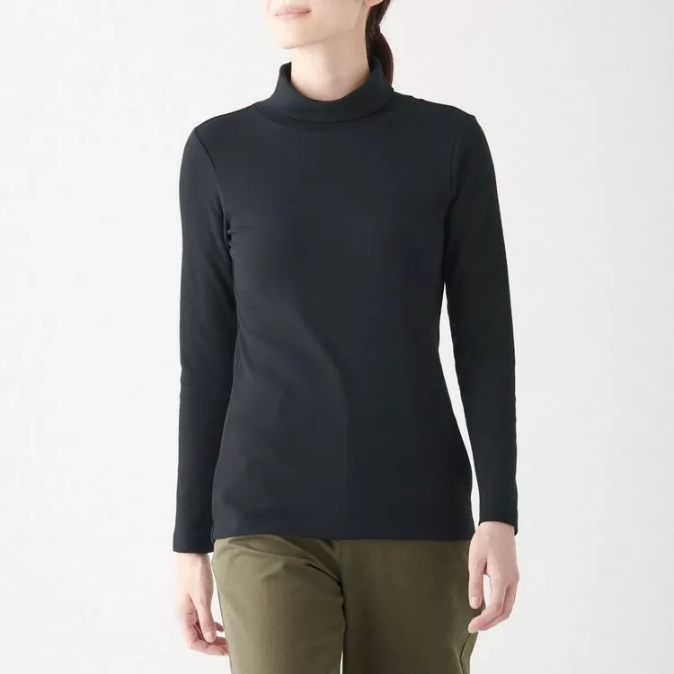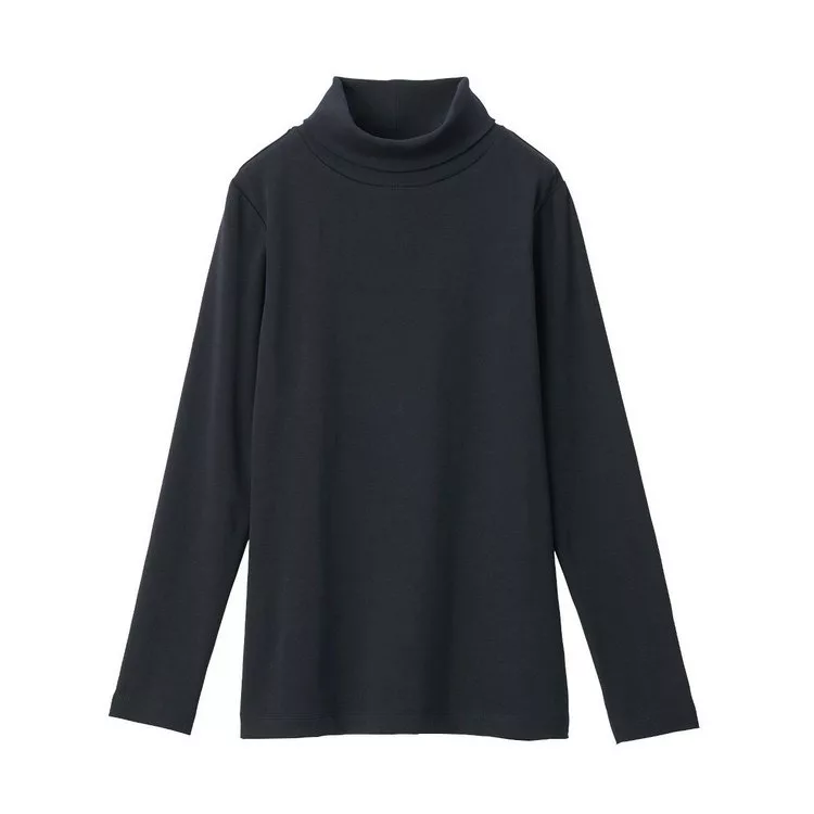 [MUJI無印良品]女有機棉混彈性針織高領T恤S暗藍