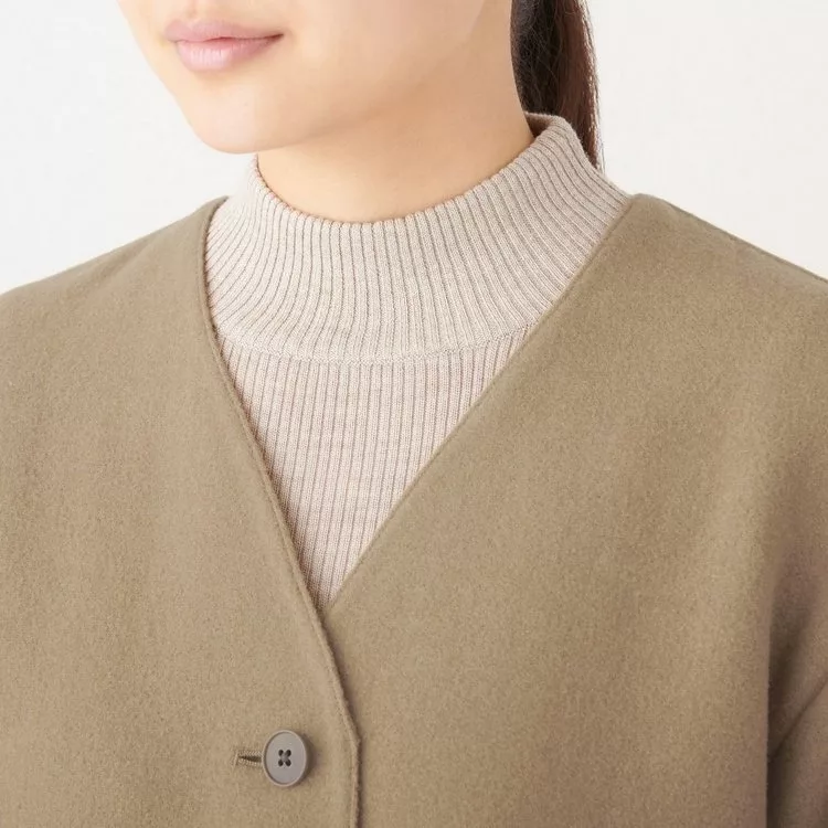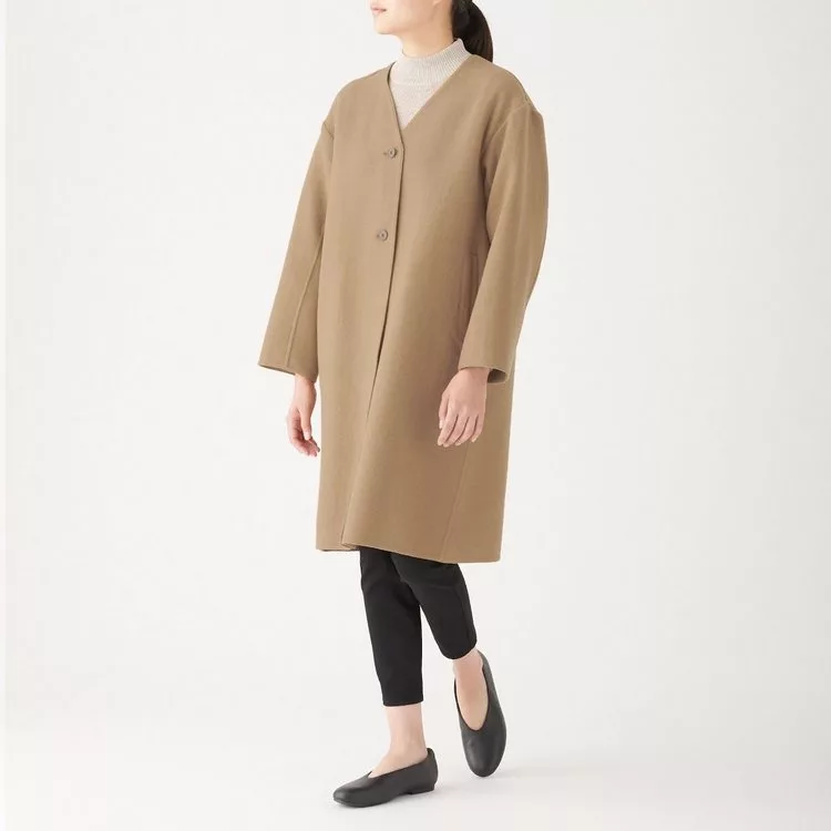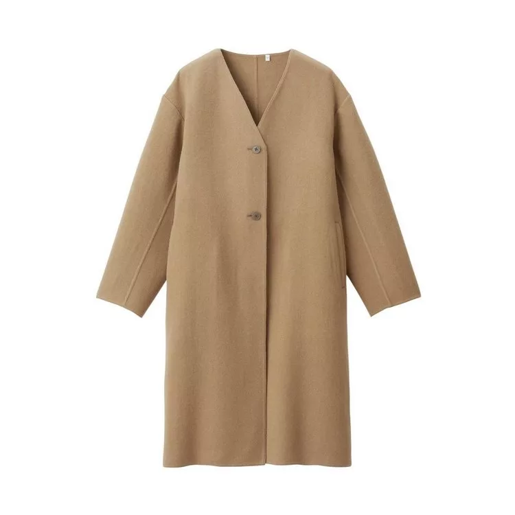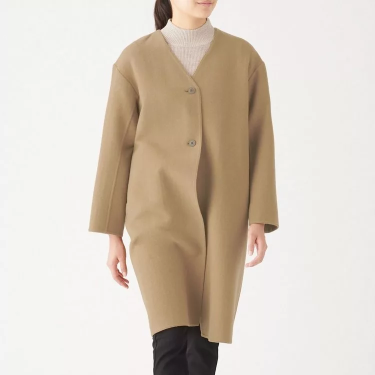 [MUJI無印良品]女法國羊毛混雙面大衣S駝色