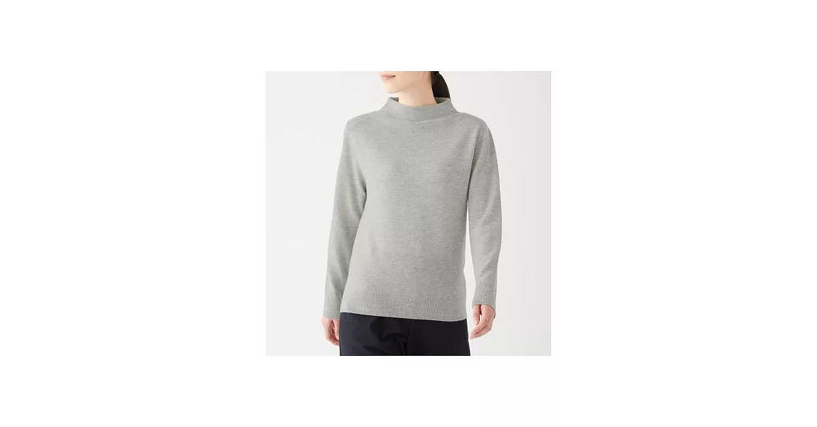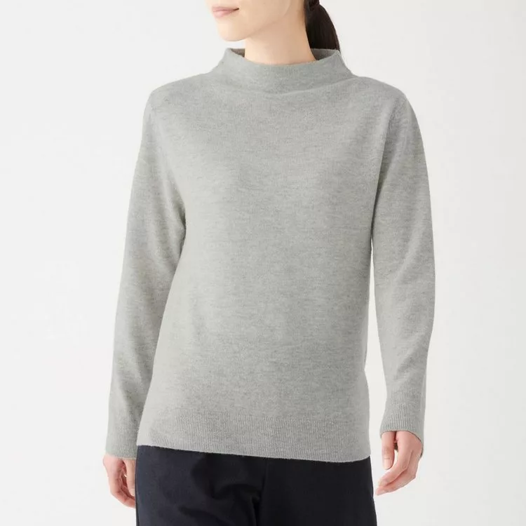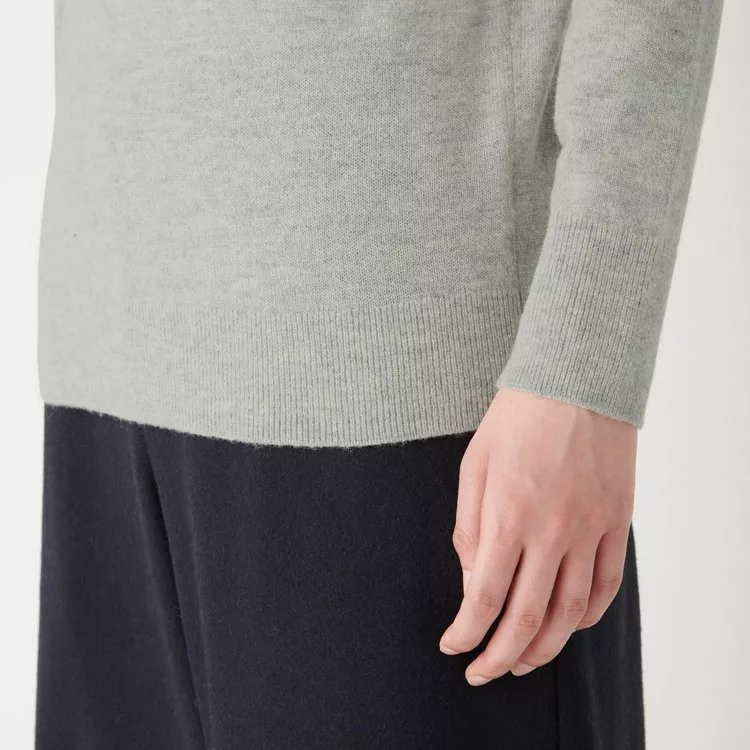 [MUJI無印良品]女氂牛毛混羊毛短領針織衫S淺灰