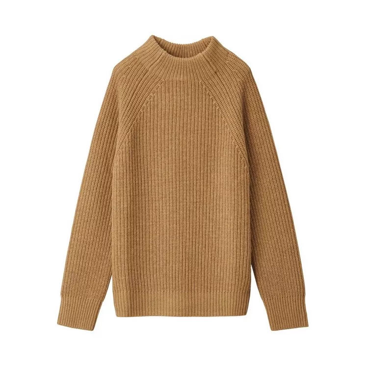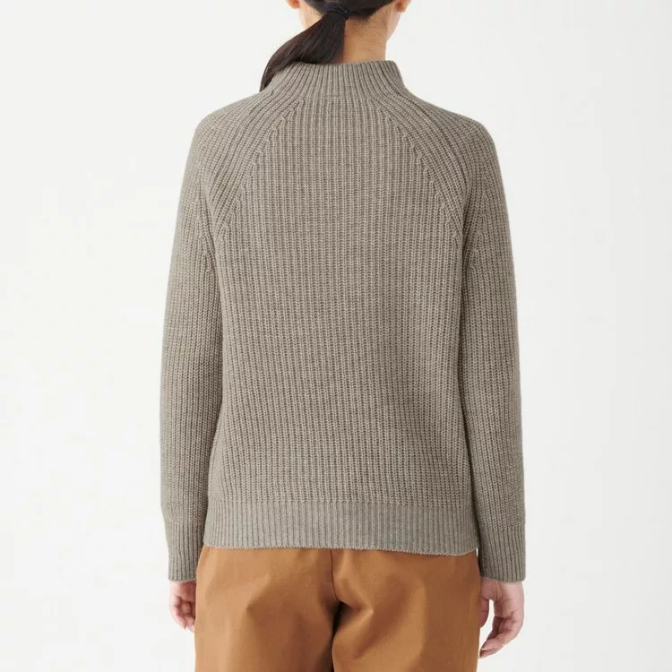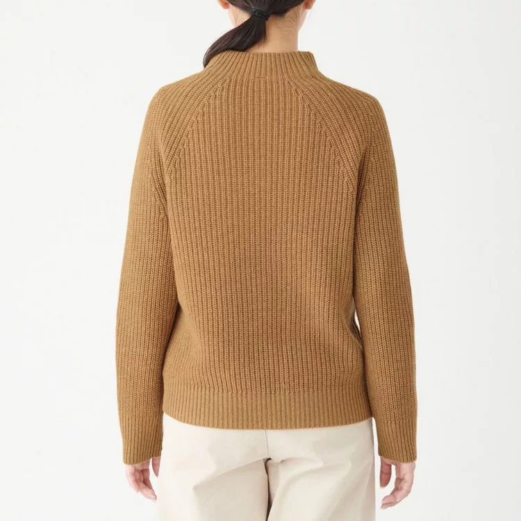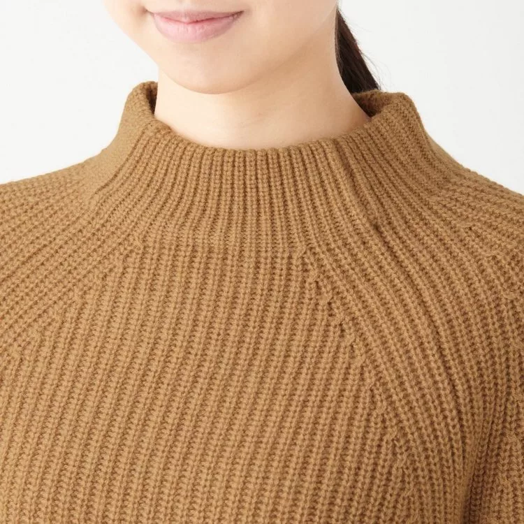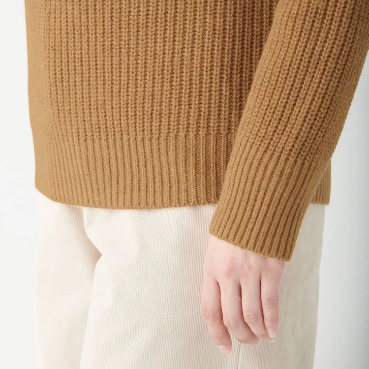 [MUJI無印良品]女氂牛毛混羊毛螺紋短領針織衫S摩卡棕