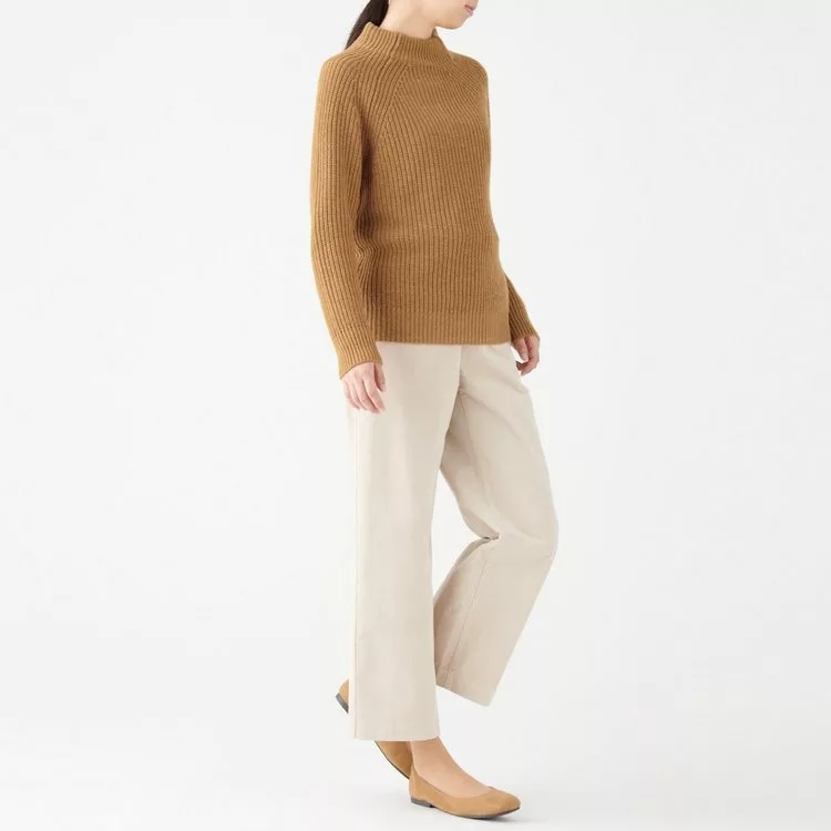 [MUJI無印良品]女有機棉混彈性針織半高領T恤XL棕色4