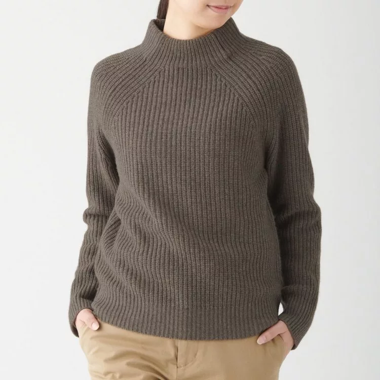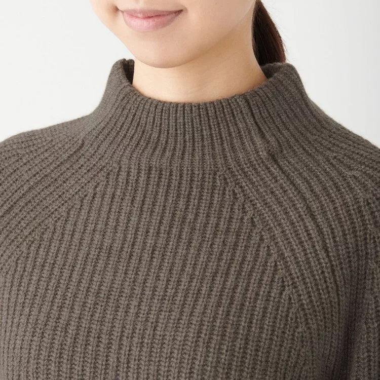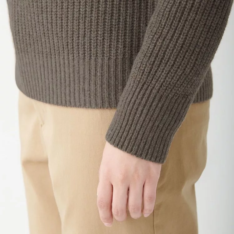商品說明: [MUJI無印良品]女氂牛毛混羊毛螺紋短領針織衫S深摩卡棕