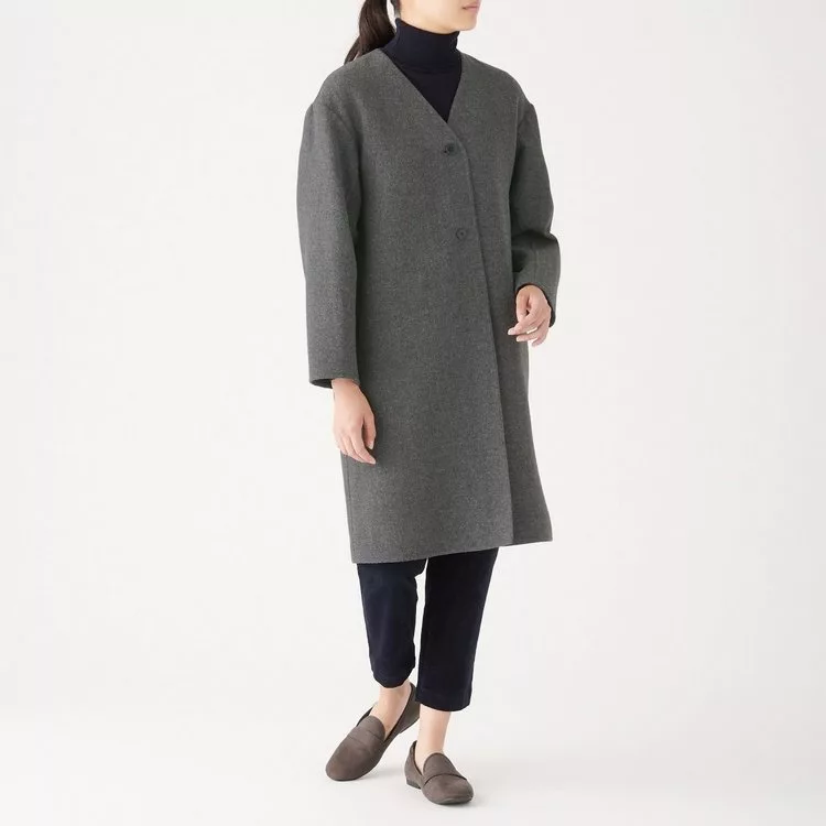 [MUJI無印良品]女法國羊毛混雙面大衣S深灰