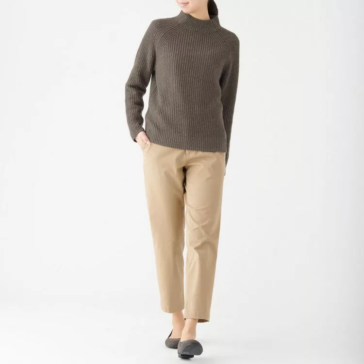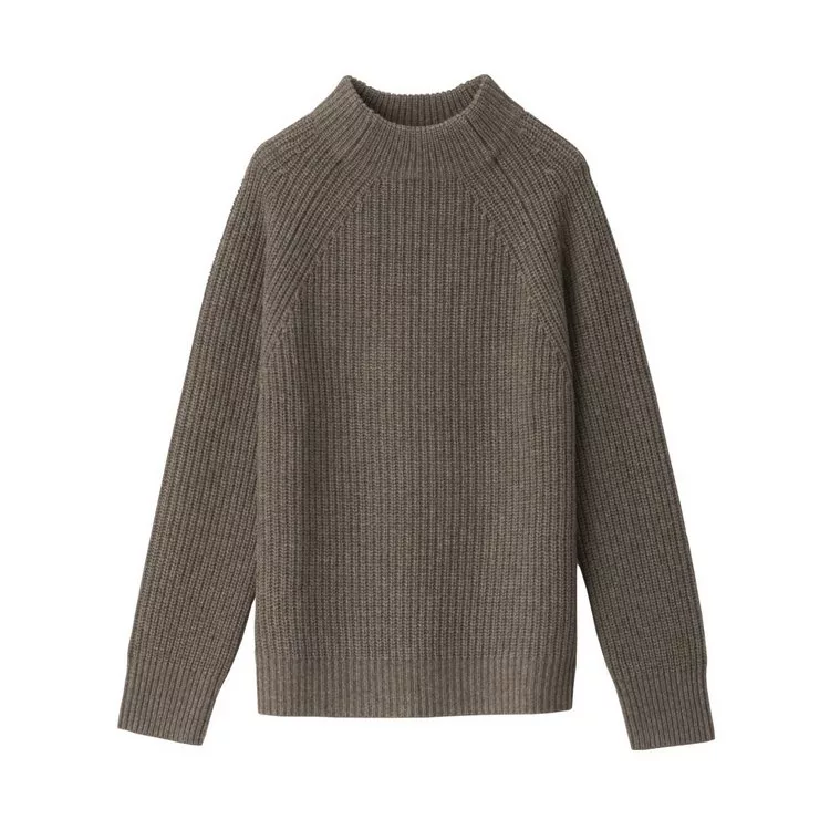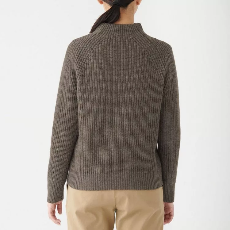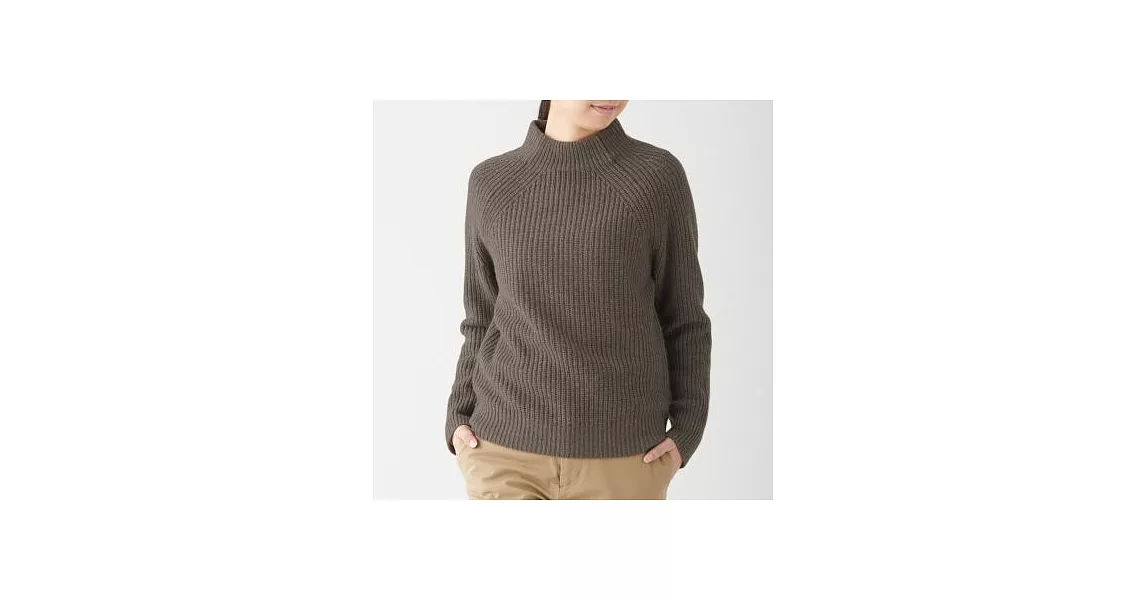 商品說明: [MUJI無印良品]女氂牛毛混羊毛螺紋短領針織衫S深摩卡棕