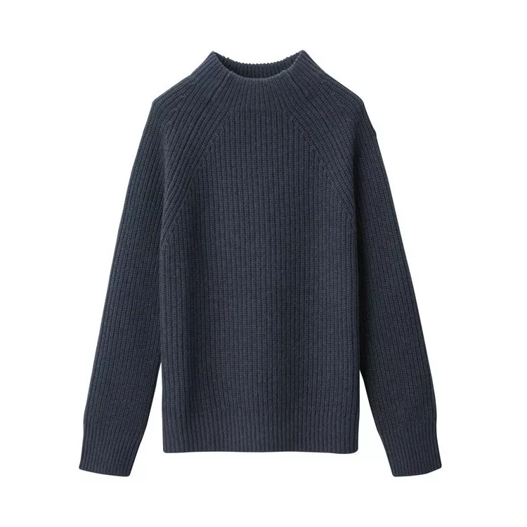 [MUJI無印良品]女氂牛毛混羊毛螺紋短領針織衫S深藍