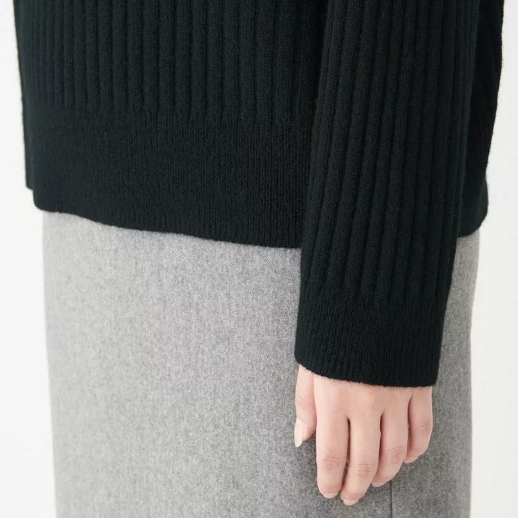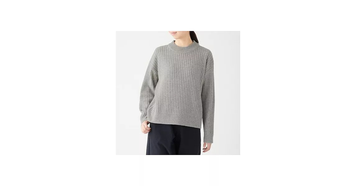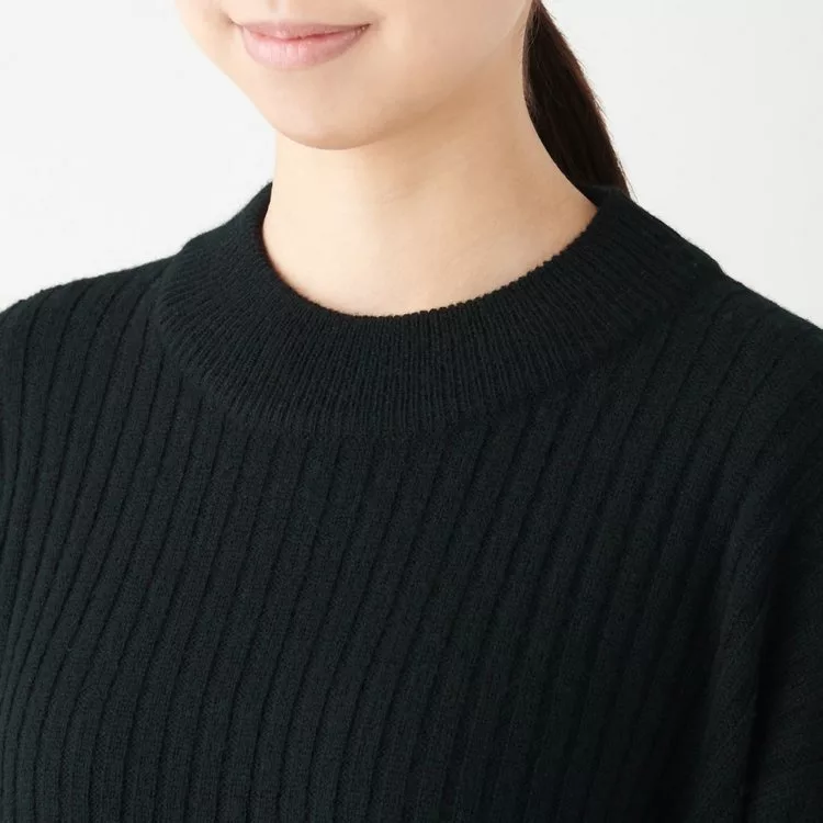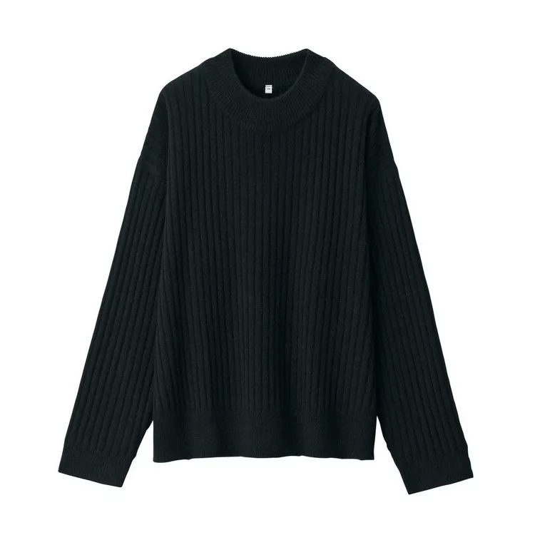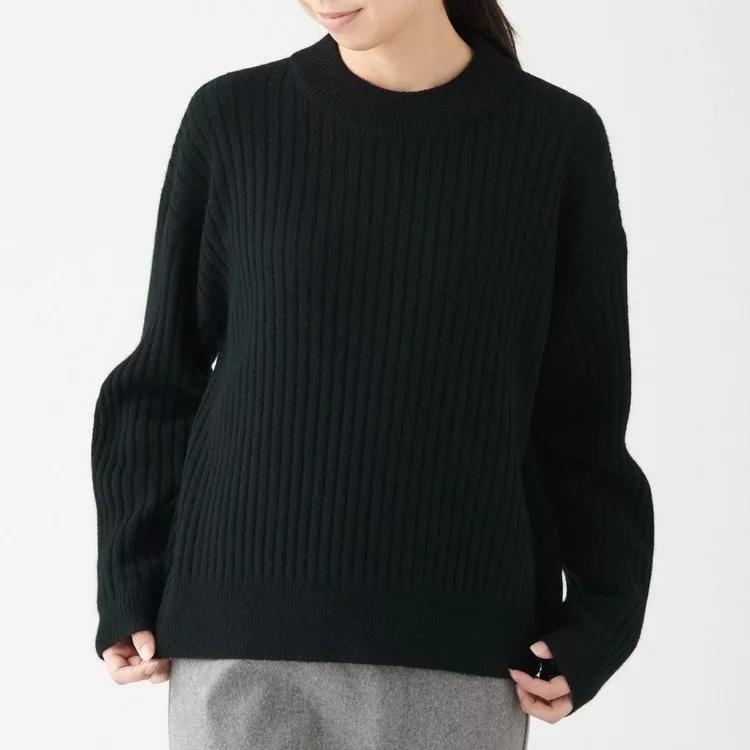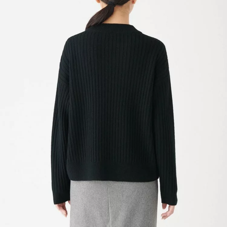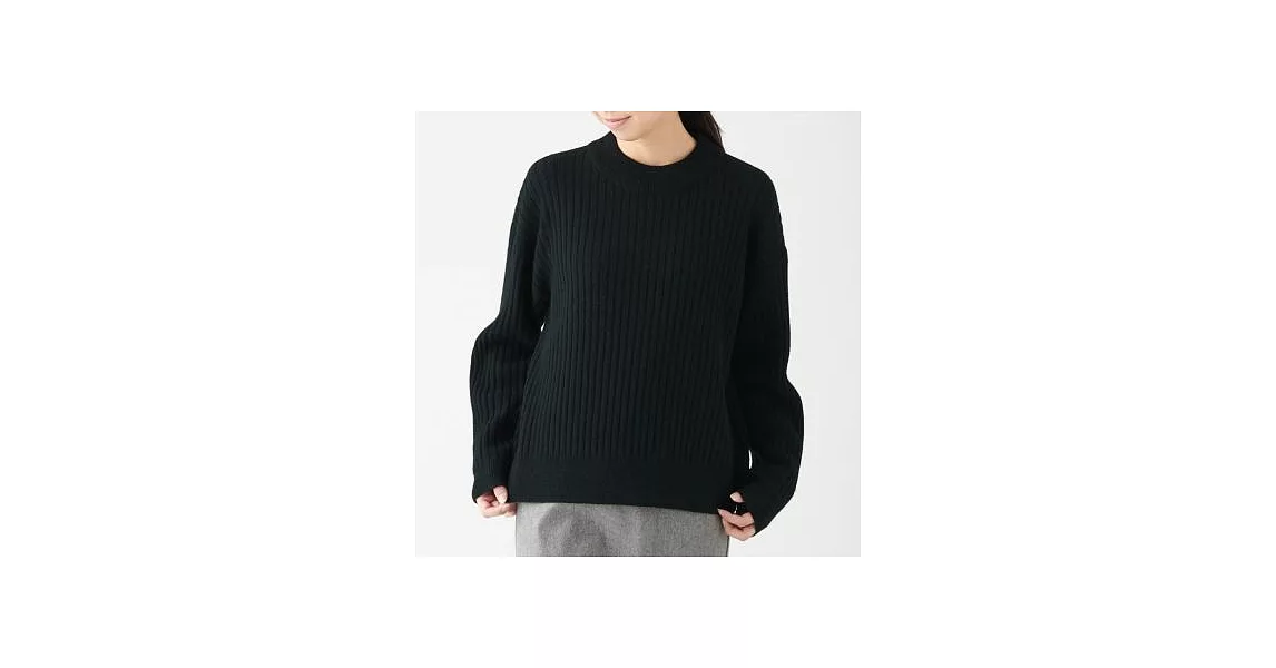 [MUJI無印良品]女氂牛毛混羊毛寬螺紋短領針織衫S黑色