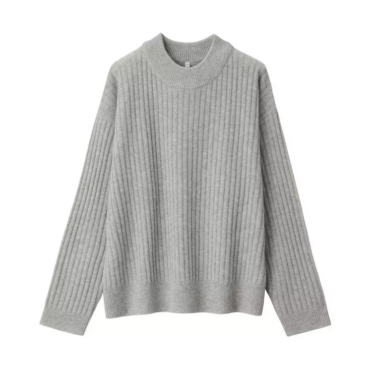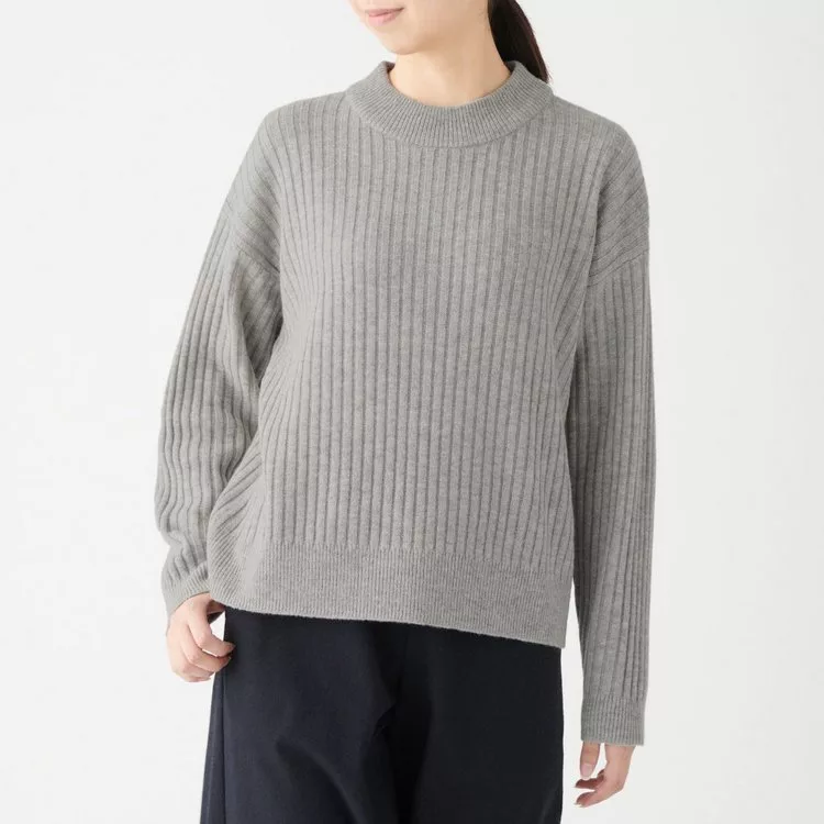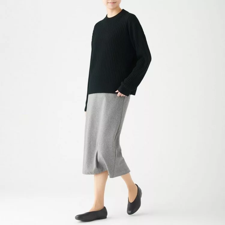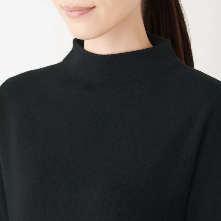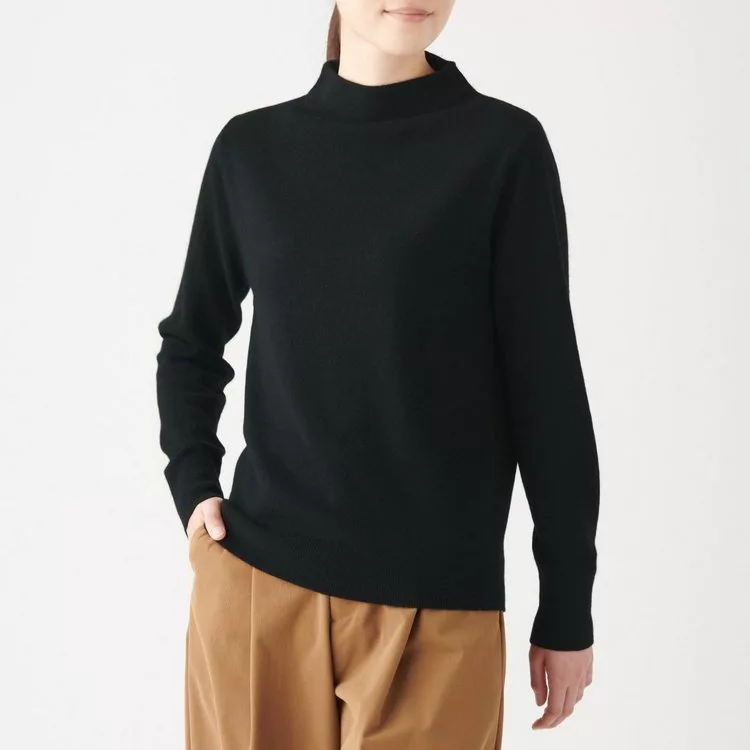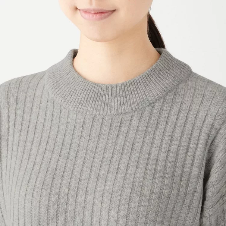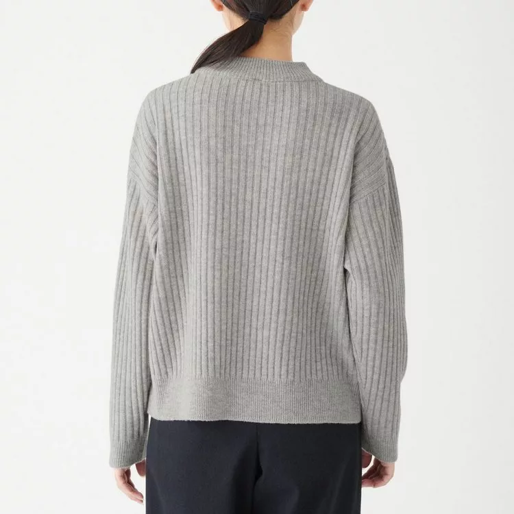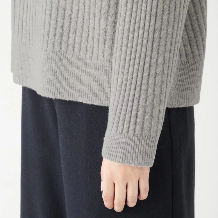 [MUJI無印良品]女氂牛毛混羊毛寬螺紋短領針織衫S黑色