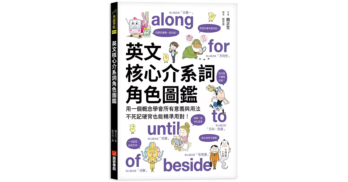 商品描述: 書名:英文核心介系詞角色圖鑑:用一個概念學會所有意義與用法,不死記硬背也能精準用對!,原文名稱:核心のイメージがわかる!前置詞キャラ図鑑,語言:繁體中文,ISBN:9789869878401,頁數:160,出版社:語研學院,作者:關正生,譯者:劉芳英,出版日期:2020/04/30,類別:語言學習
