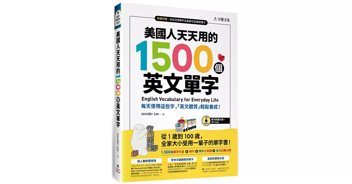 本書從「全民英檢初級~中級」及「多益測驗」常考單字表中,挑選出使用頻率最高的日用單字,另外加上最道地、口語的美國家庭日常用字。把書中的1,500個單字統統記住,一輩子都適用!