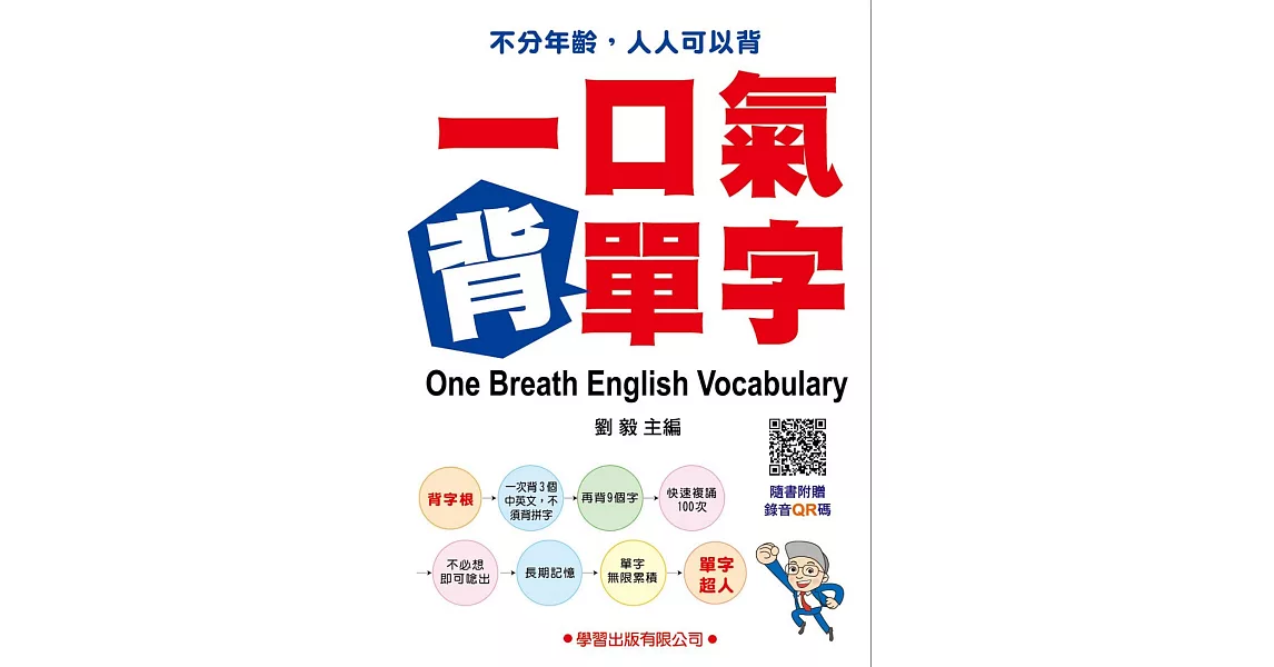 背單字是學英文的第一步,但是,背了會忘記,是增加單字量最大的障礙。學習出版社最新出版的「一口氣背單字」是劉毅老師顛覆傳統學習方法的最大發明,以「字根」為核心,經過「三字為一組」的特殊編排,背英文同時背中文,只要加快速度,背到變成直覺,就能終身不忘記。