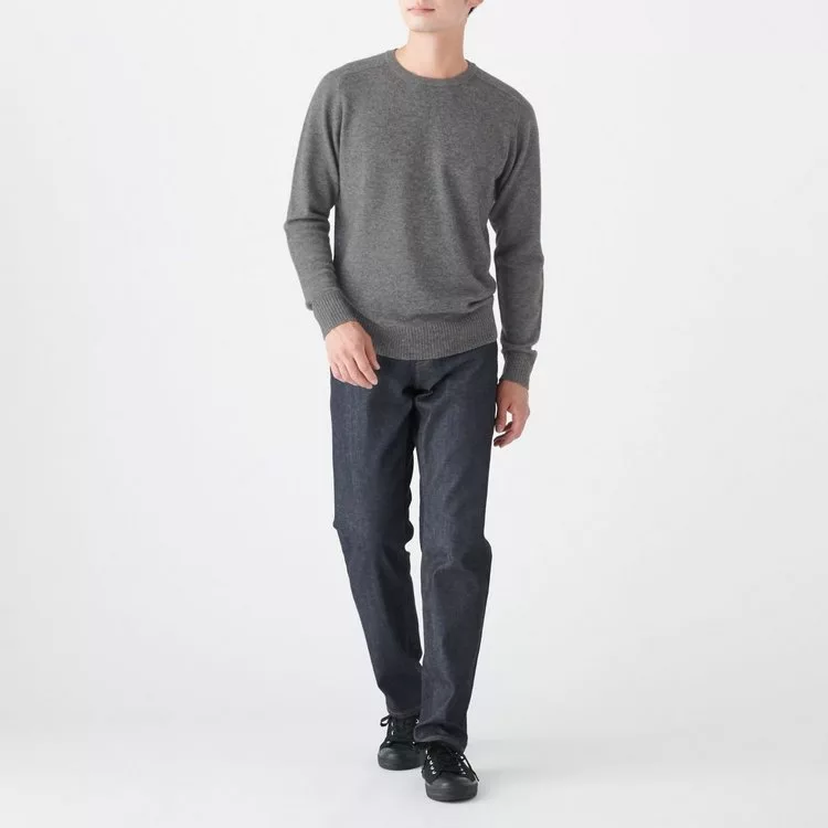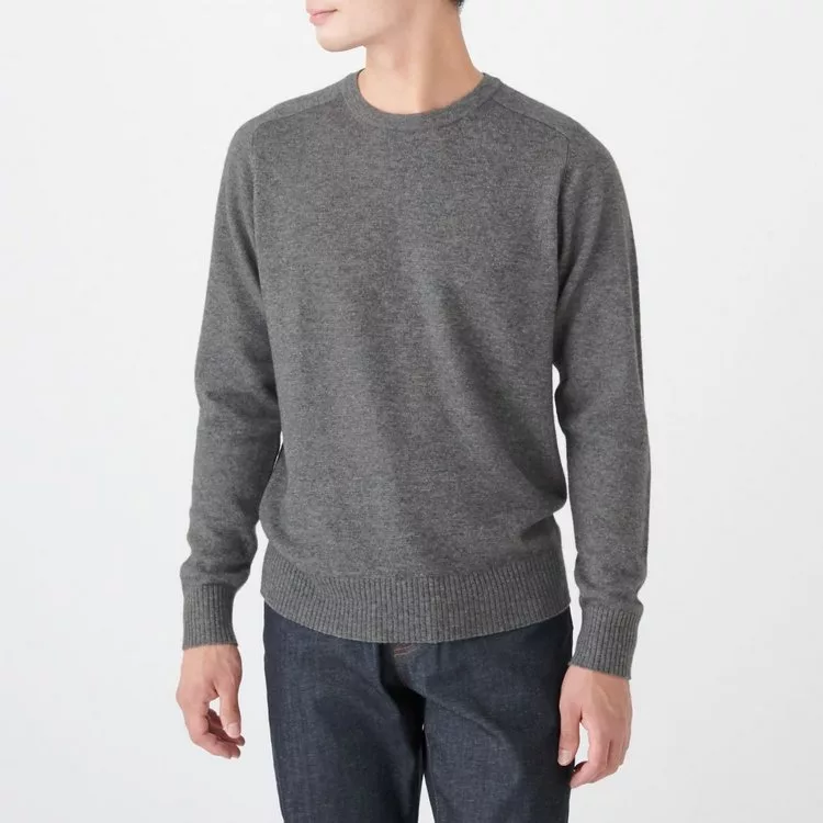 商品描述: [MUJI無印良品]男氂牛毛混羊毛圓領針織衫S灰色