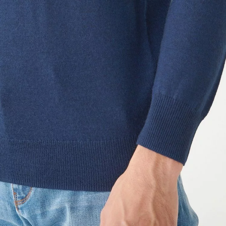 品名:男美麗諾羊毛高密織圓領針織衫煙燻藍S
