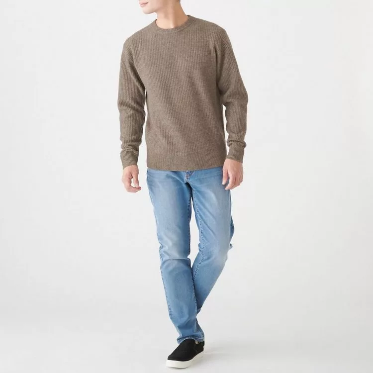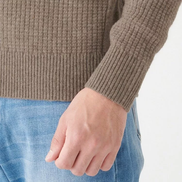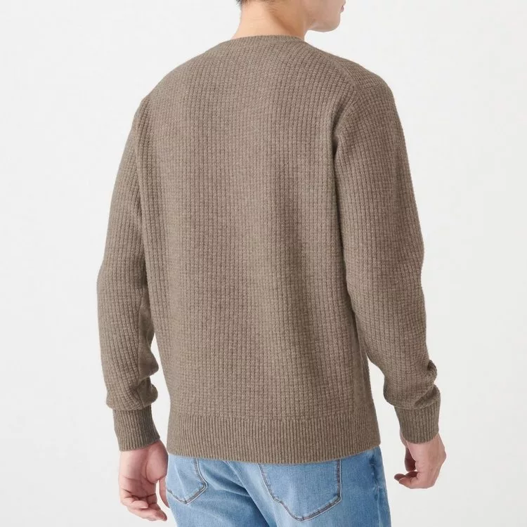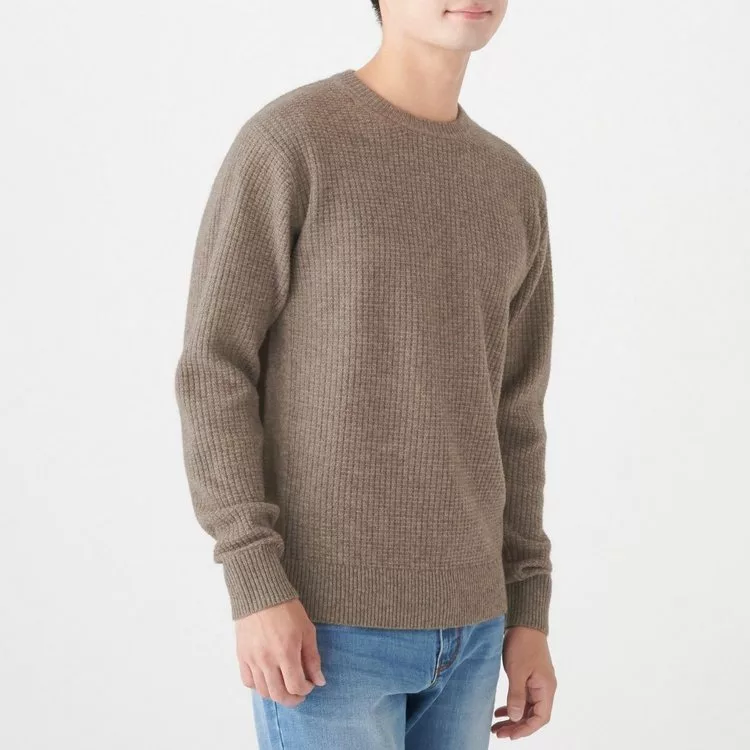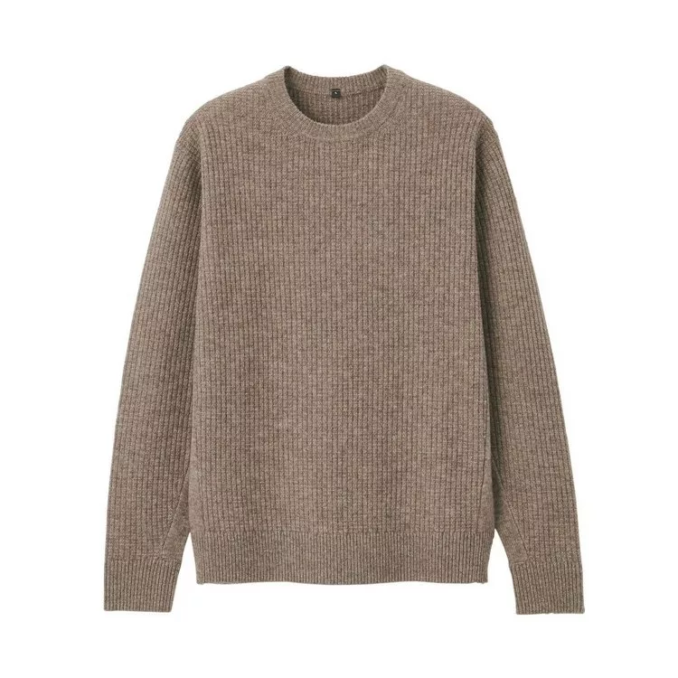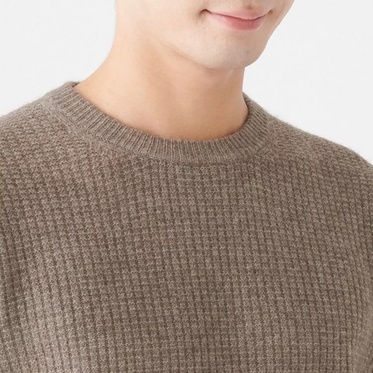 商品描述: [MUJI無印良品]男氂牛毛混羊毛鬆餅紋圓領針織衫S深摩卡棕