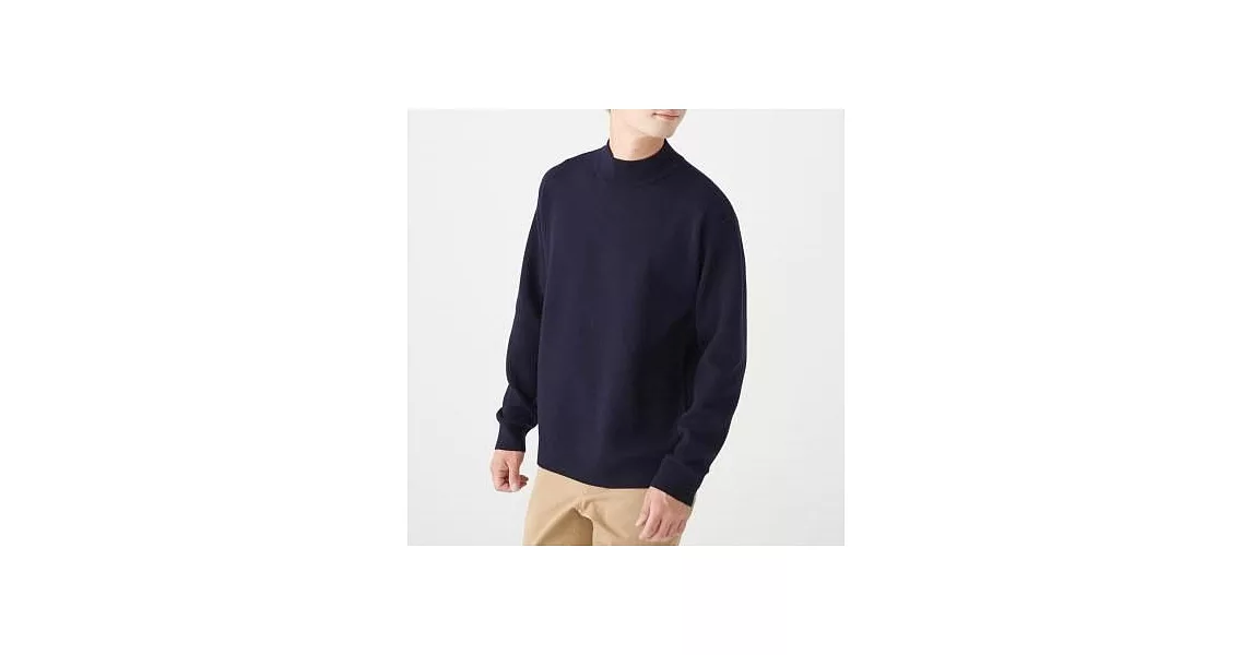 商品說明: [MUJI無印良品]男羊毛混雙面織短領針織衫S暗藍