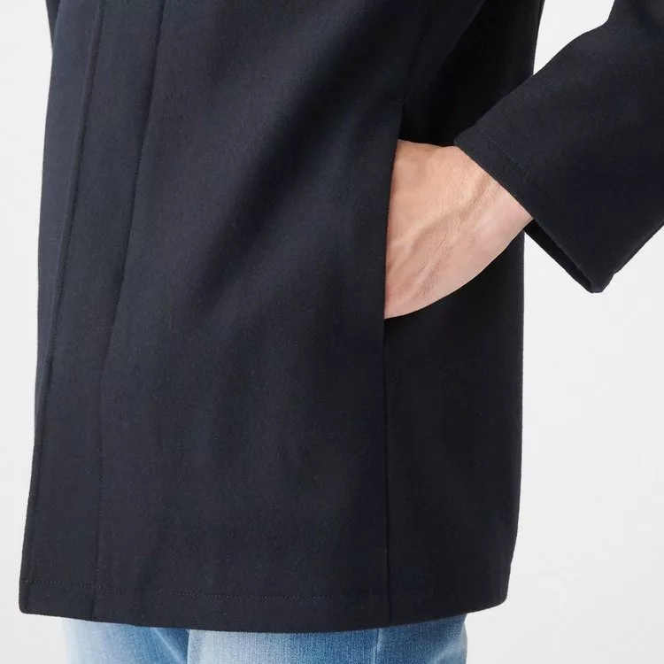 商品說明: [MUJI無印良品]男法國羊毛混縮絨短大衣S暗藍