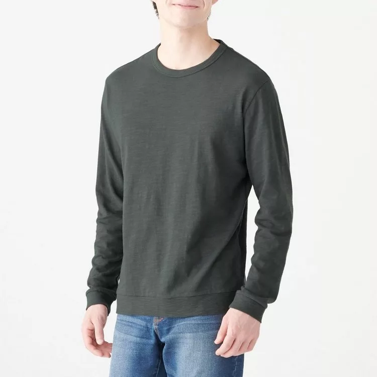 商品說明: [MUJI無印良品]男印度棉節紗長袖T恤S墨灰