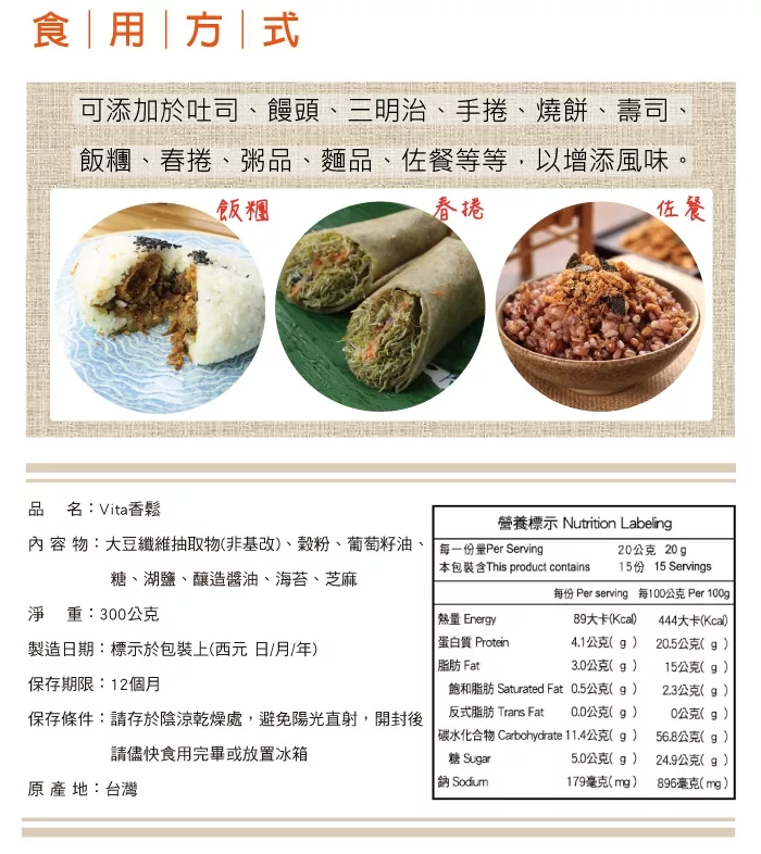 →→→→更多詳細”【康健生機】VITA香鬆300g”介紹請點我