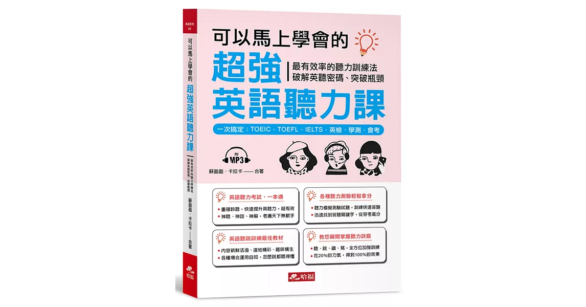 博客來-可以馬上學會的超強英語聽力課 一次搞定:TOEIC.TOEFL.IELTS.英檢.學測.會考(附MP3)訂購網址: https://www.books.com.tw/exep/assp.php/87926/products/0010869925?utm_source=87926&utm_medium=ap-books&utm_content=recommend&utm_campaign=ap-201905