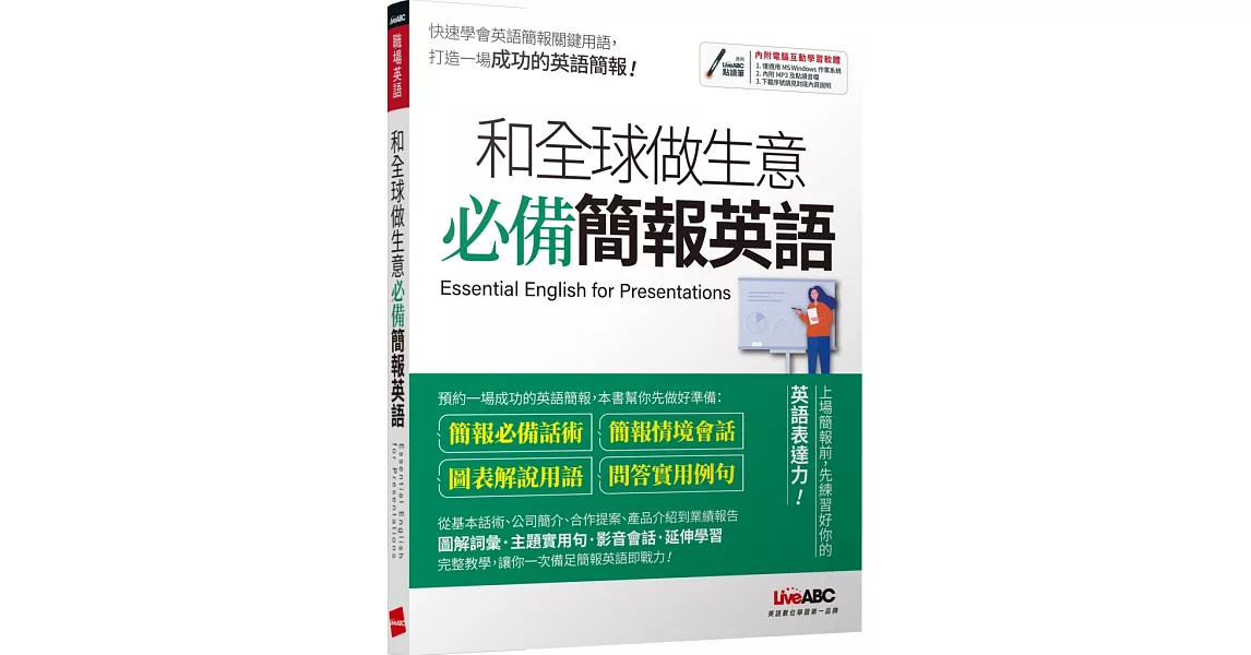 博客來-和全球做生意 必備簡報英語:【書+電腦互動學習軟體(含朗讀MP3)】訂購網址: https://www.books.com.tw/exep/assp.php/87926/products/0010870570?utm_source=87926&utm_medium=ap-books&utm_content=recommend&utm_campaign=ap-201905