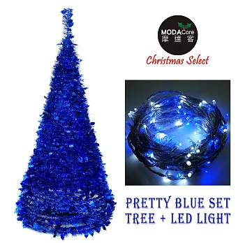 →→→→更多詳細”【摩達客】6尺-6呎(180cm) 創意彈簧摺疊聖誕樹 (藍色系)+LED100燈藍白光透明線一條(本島免運費)”介紹請點我←←←←←
