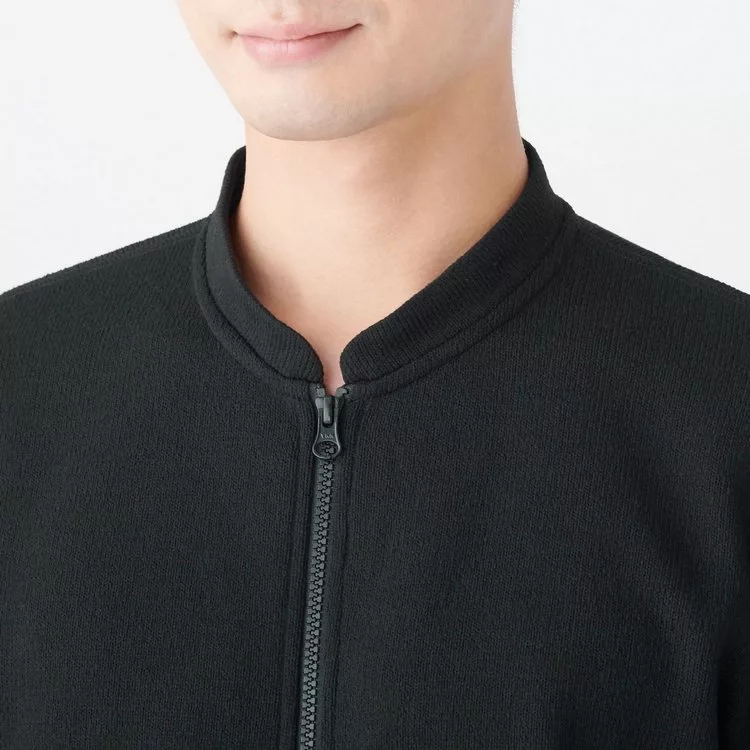 商品說明: [MUJI無印良品]男聚酯纖維針織刷毛拉鍊外套S黑色