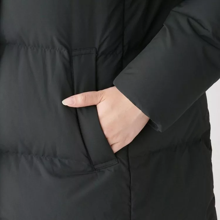 商品描述: [MUJI無印良品]女澳洲羽絨防潑水連帽大衣S黑色