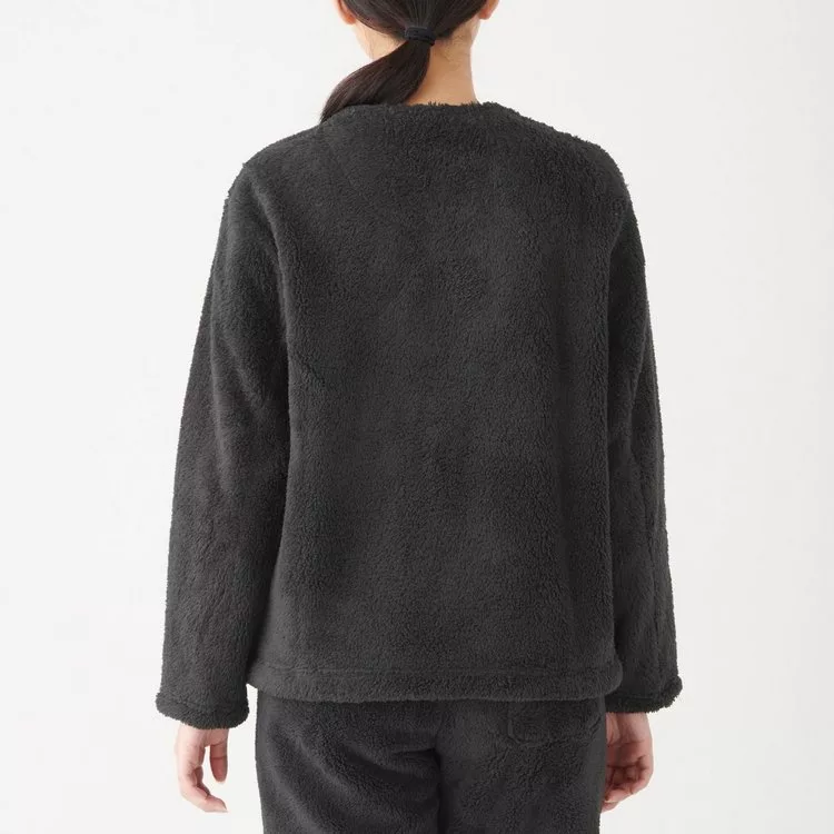 [MUJI無印良品]女聚酯纖維針織刷毛附帽大衣XS~S暗藍6