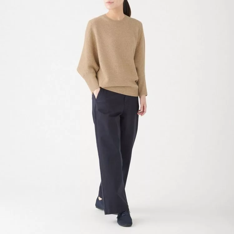 [MUJI無印良品]女有機棉混彈性高密織舒適寬擺八分褲XL米色