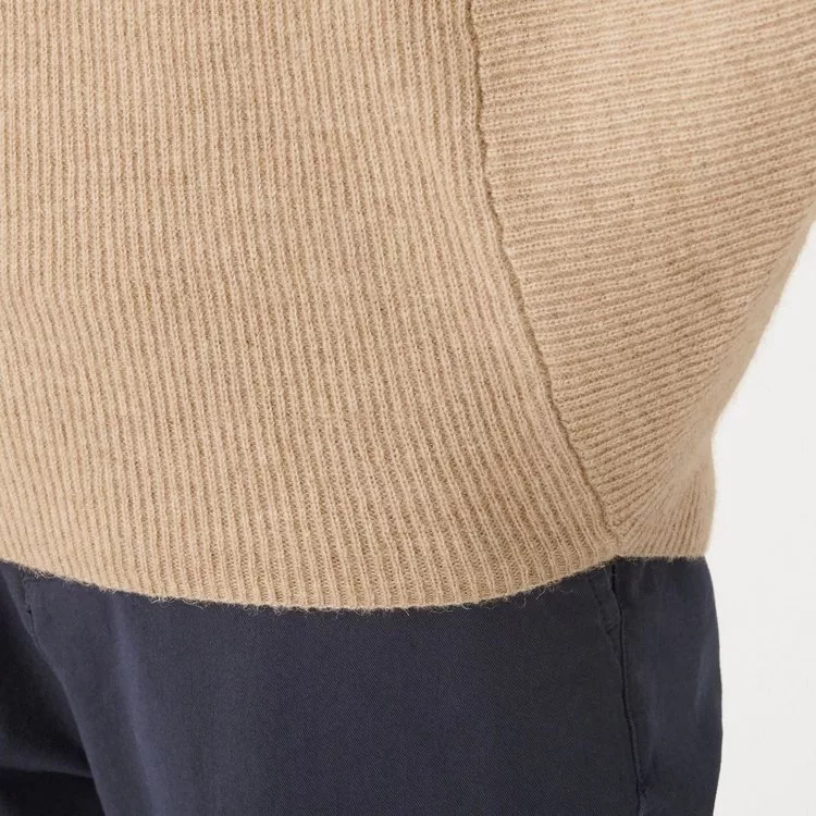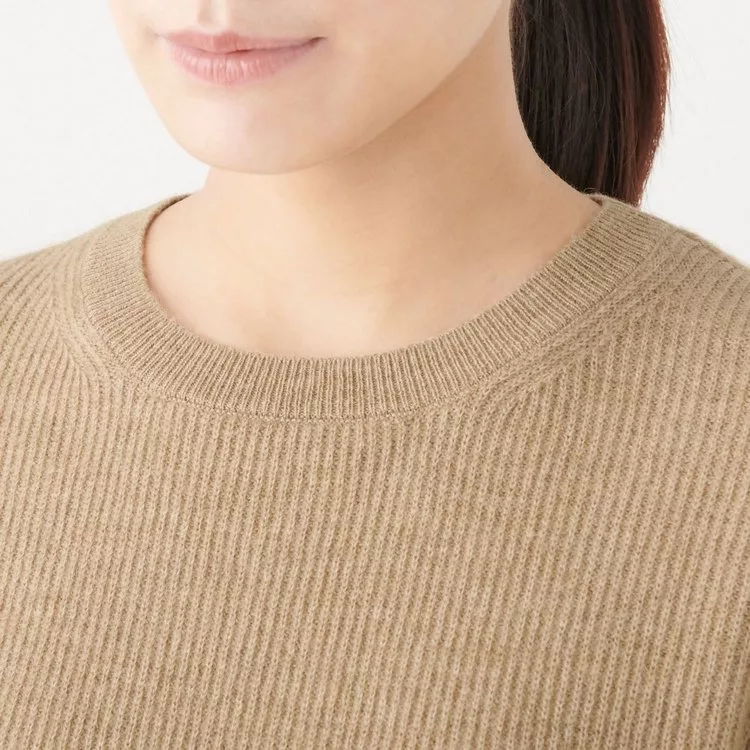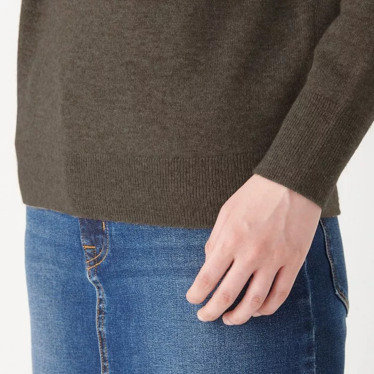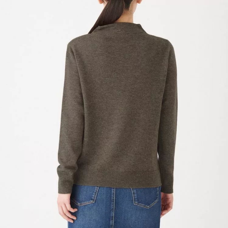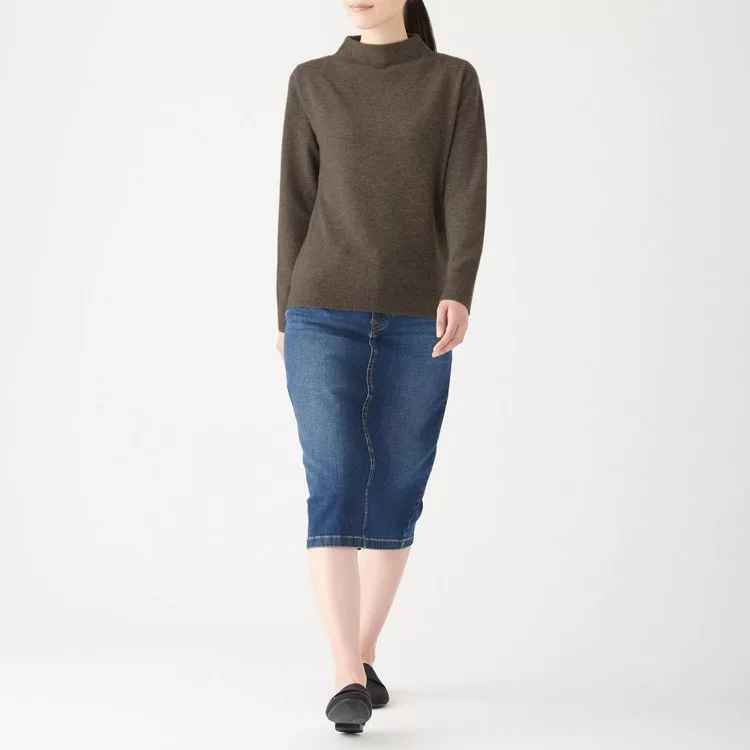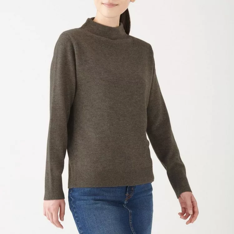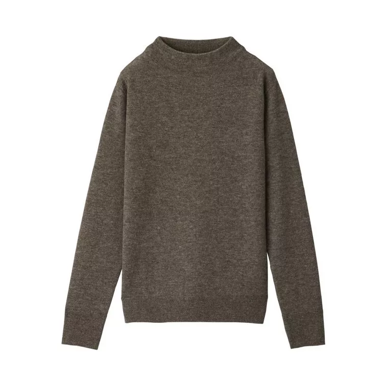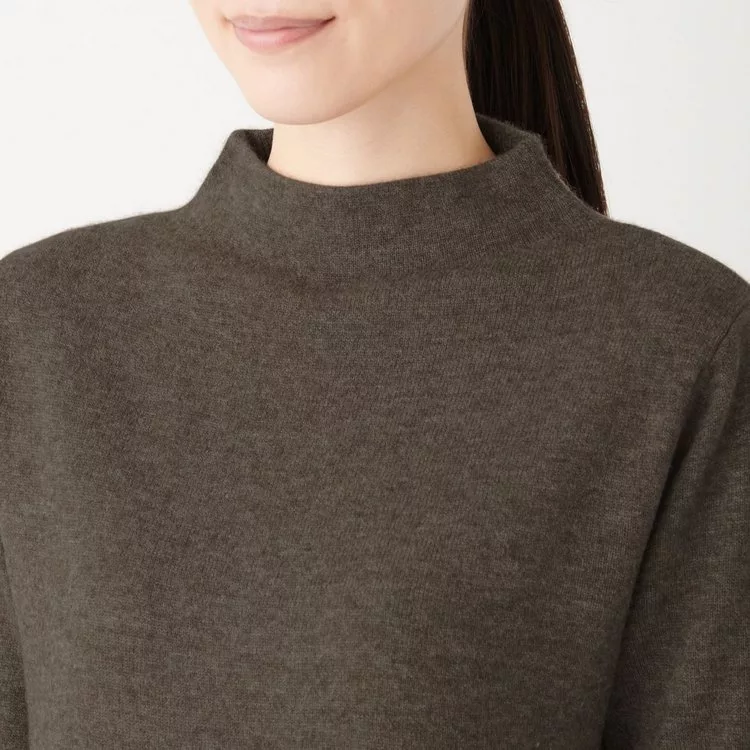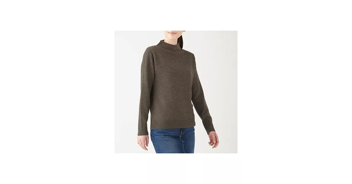 [MUJI無印良品]女有機棉混彈性針織高領T恤S煙燻芥黃