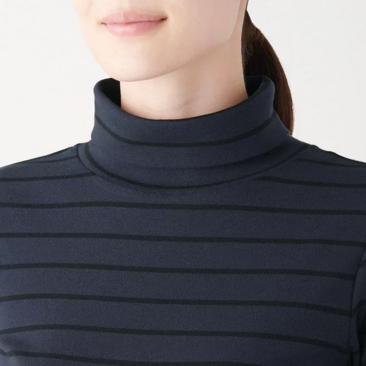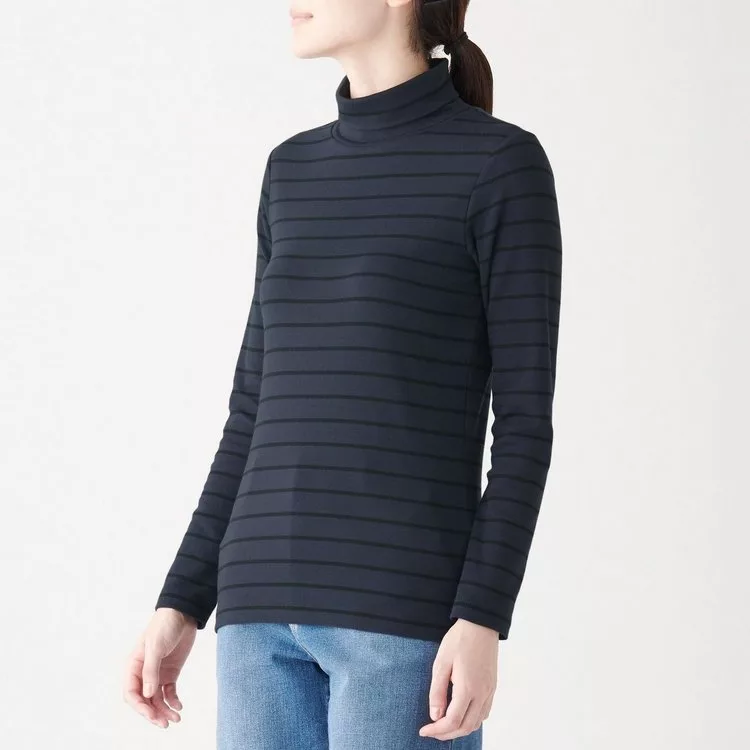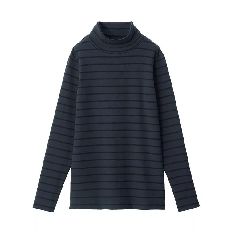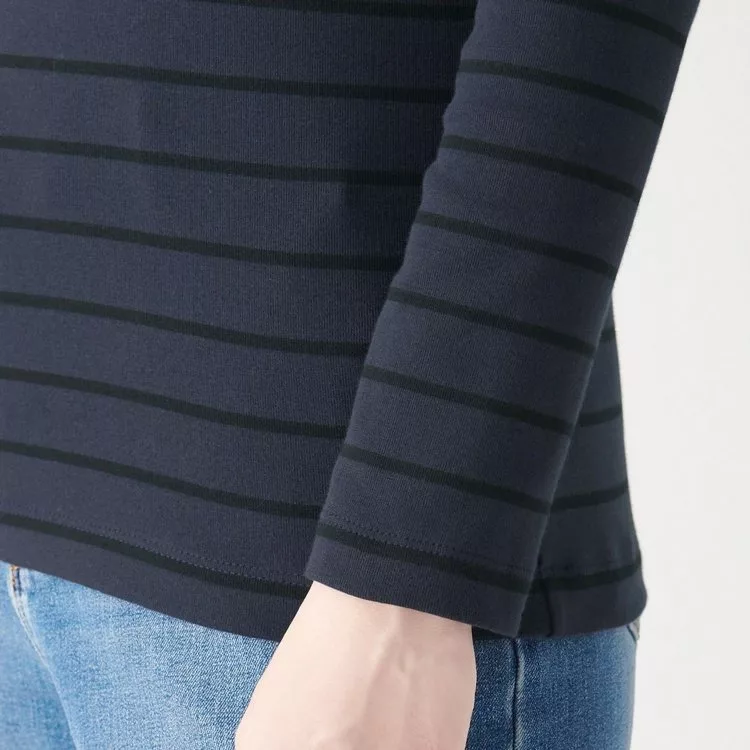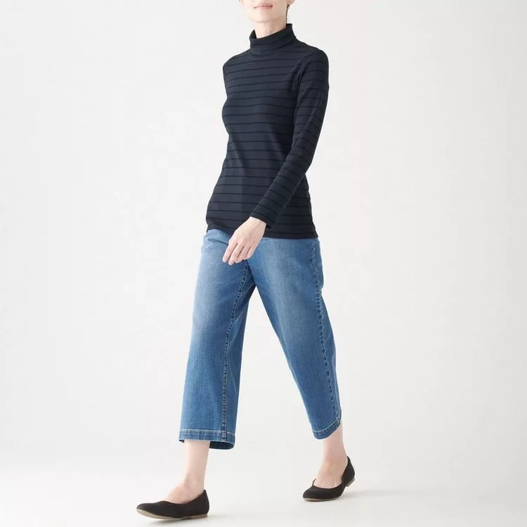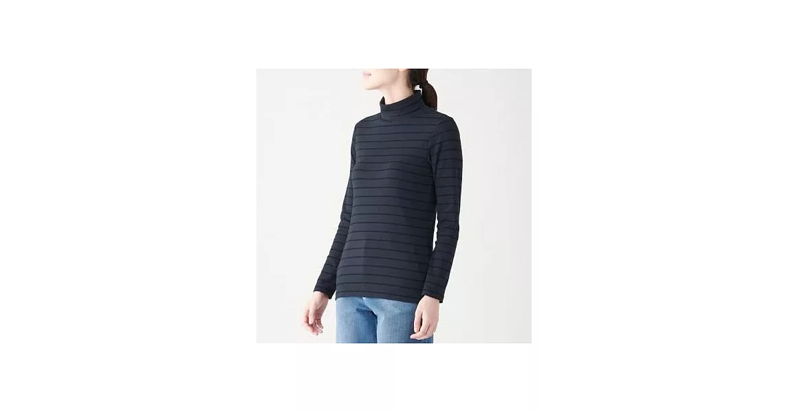 [MUJI無印良品]女有機棉混彈性針織高領T恤S柔白